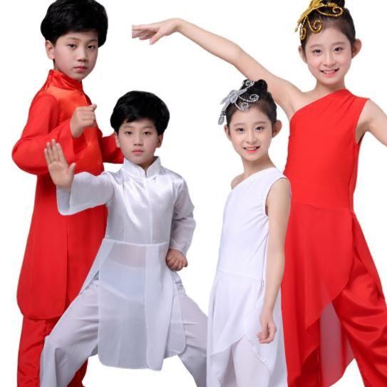 「即納」子供舞台ステージ衣装 中国風民族ダンス衣装二点セット 古典ダンス衣装 太極拳ウエア 中華漢服 チャイナドレス 男の子 女の子 剣舞カンフー衣装