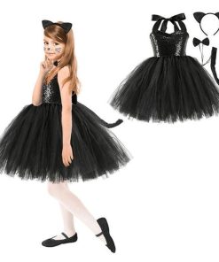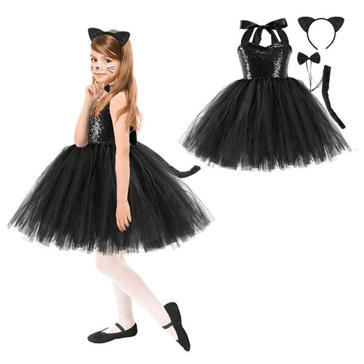 【タイムセール】ハロウィン コスプレ 衣装 子供用 子ども 黒猫 女の子 キャット 可愛い かわいい 忘年会 ドレスパーティー キッズ 演出 舞台