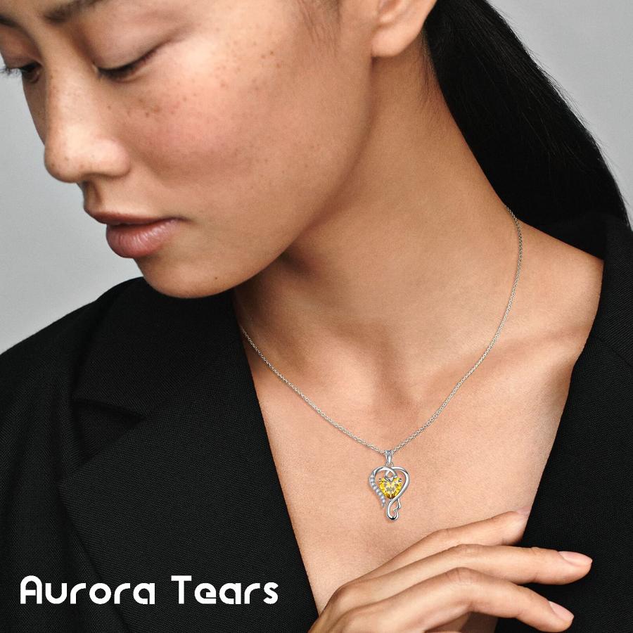 【並行輸入品】Aurora Tears 925スターリングシルバー 誕生石ネックレス ラブハートペンダント クリスタルチェーン 誕生日ジュエリー