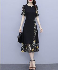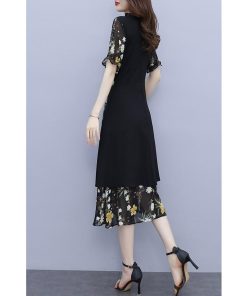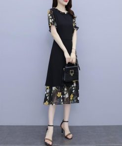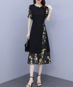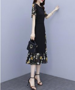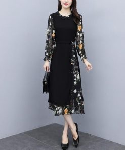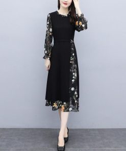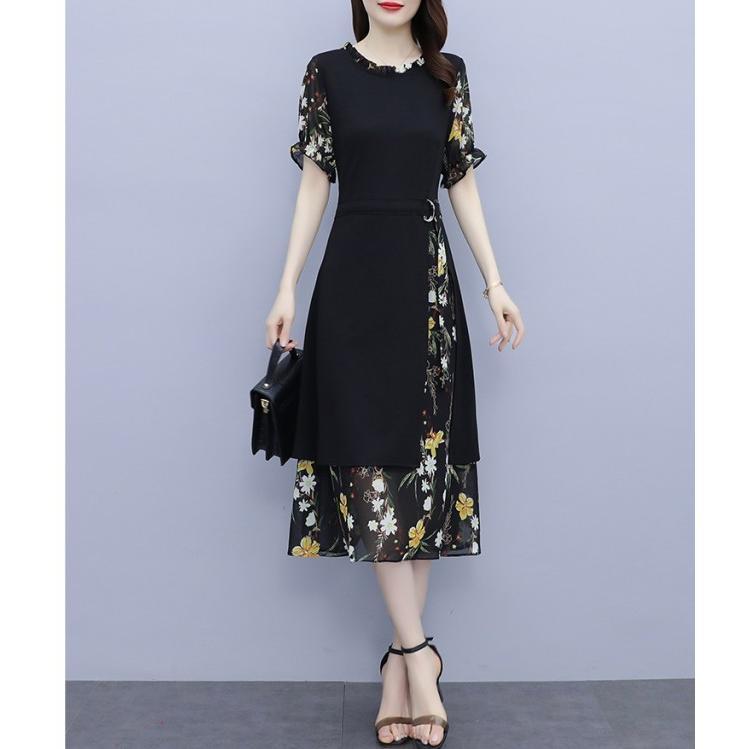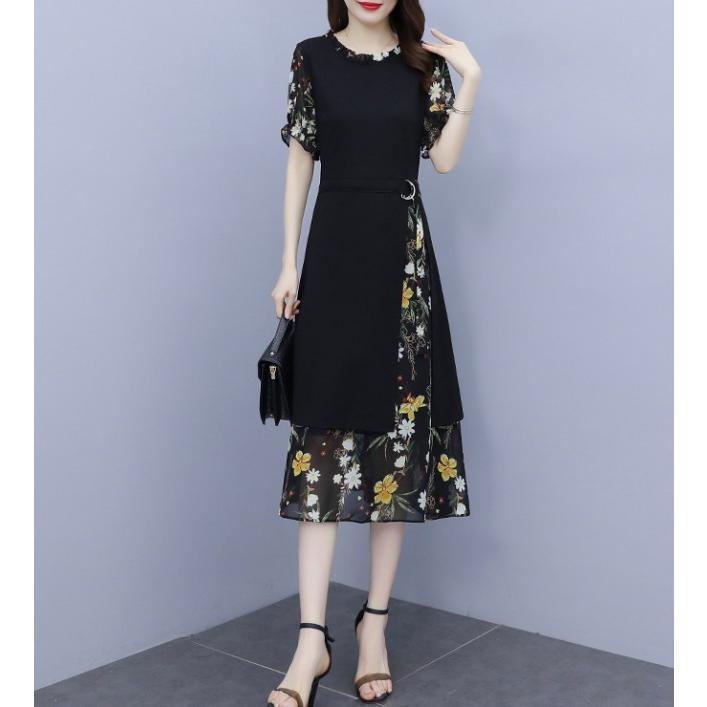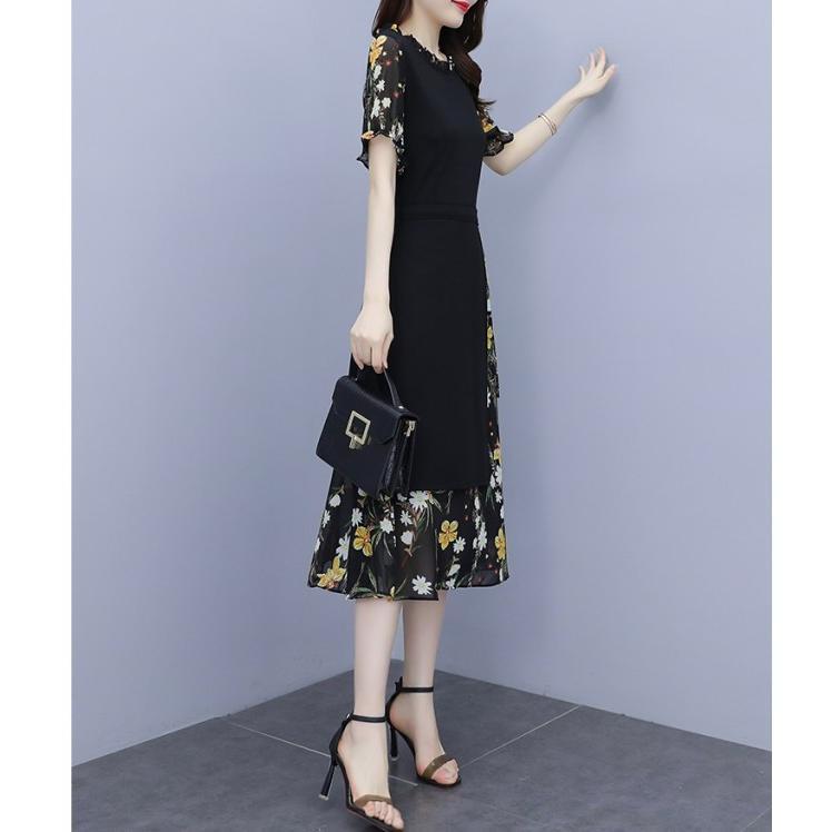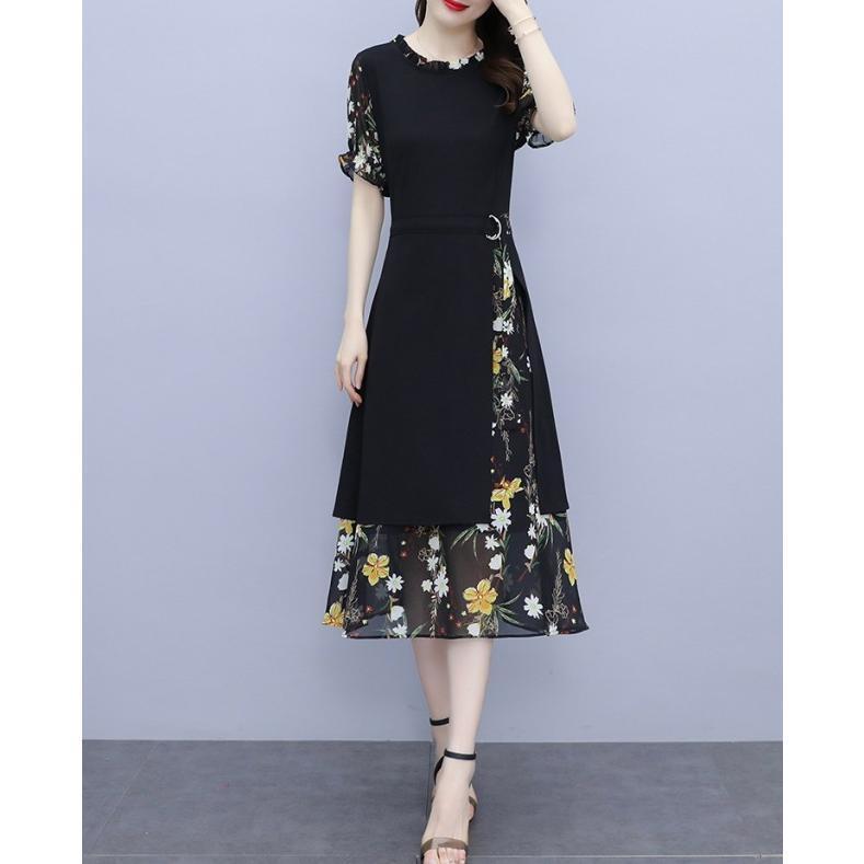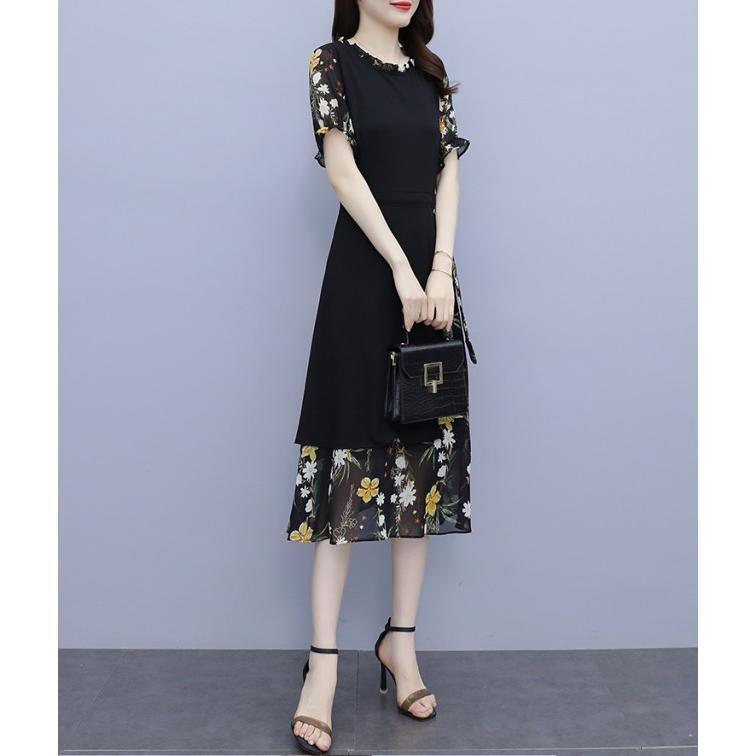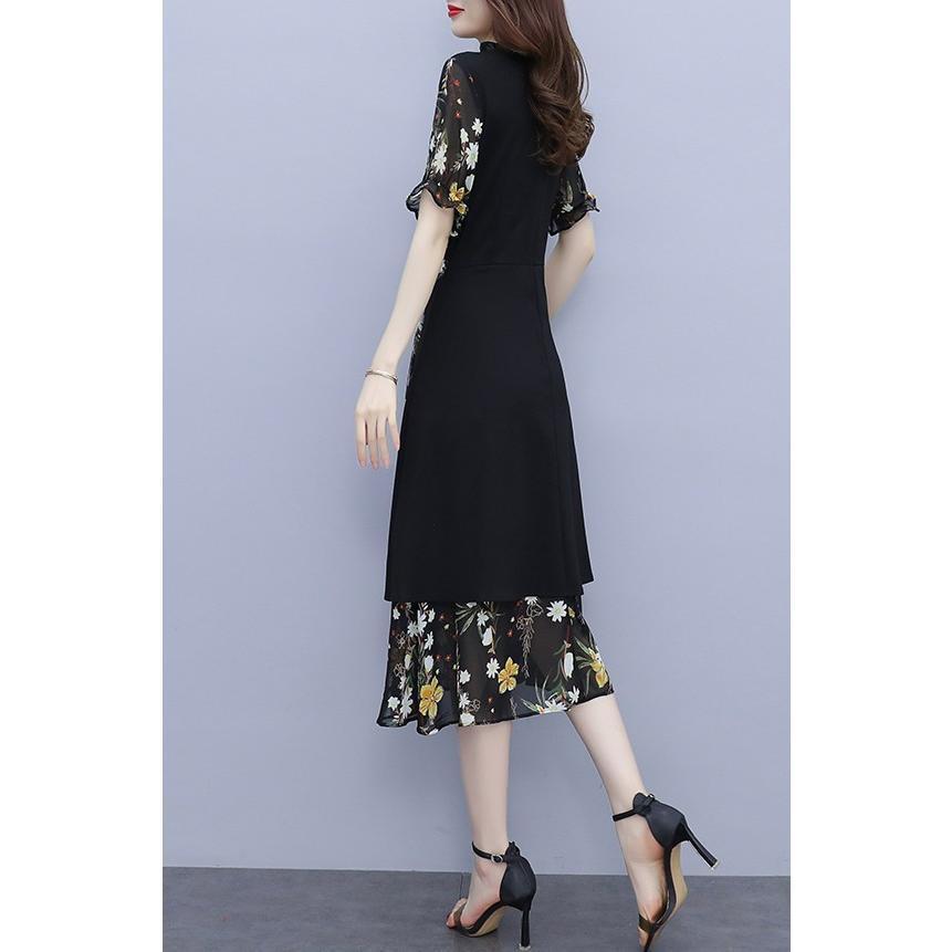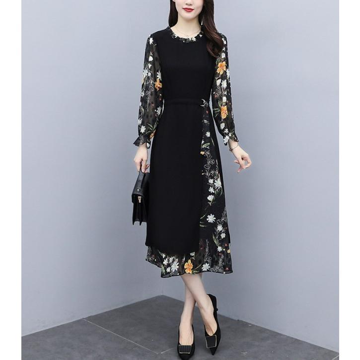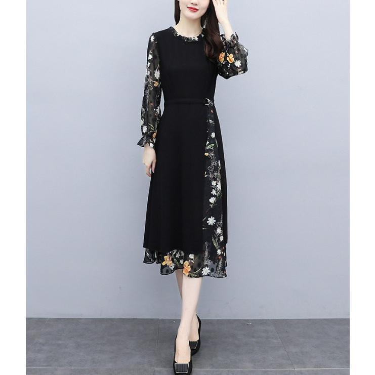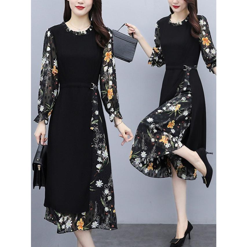 【値下げ】レディースファッション パーティードレス 結婚式 お呼ばれドレス ワンピース 袖あり 大きいサイズ 花柄 長袖 半袖 ミモレ丈 黒 韓国 フォーマル