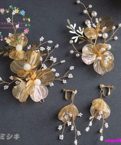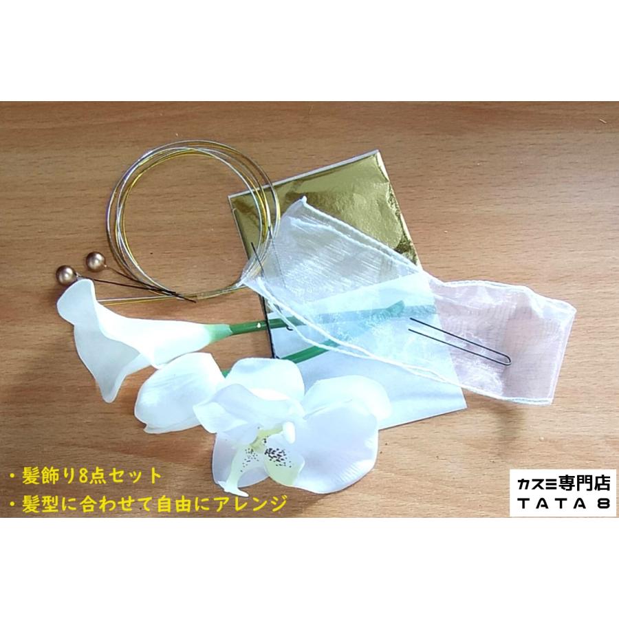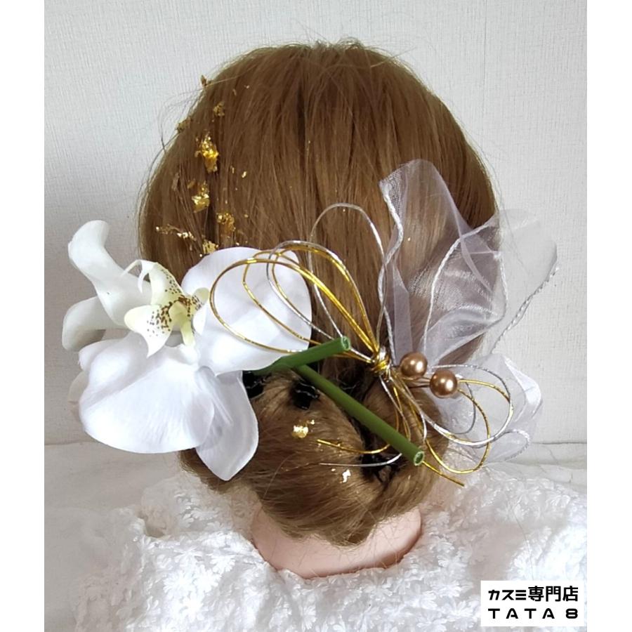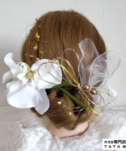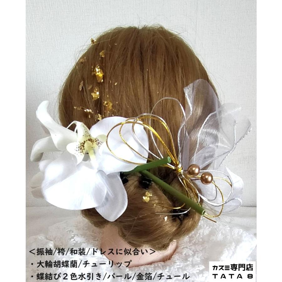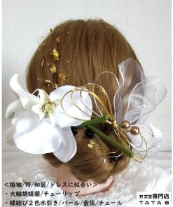 【髪飾りTata8】胡蝶蘭 チューリップ 成人式 結婚式 卒業式 卒業袴 振袖 和装 袴 着物 ヘッドドレス 蝶結び水引き 金箔 パール チュール 白/ゴールド80bh