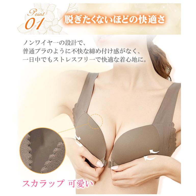 【2点目半額クーポン】レース ナイトブラ フロントホックブラ ブラジャー スカラップ 美胸 24時間使える バストアップ ノンワイヤー 前ホック