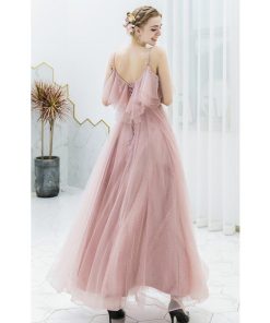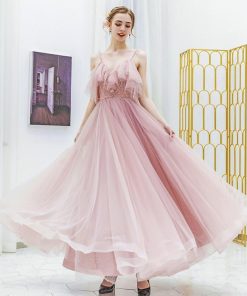 【ANGEL】キャミソールチュールラメビーズフリル背中編上げAラインロングドレス【送料無料】高品質 ピンク ロングドレス パーティードレス【GLITT
