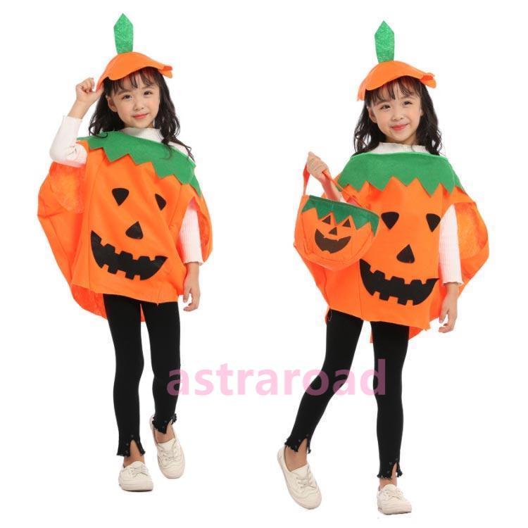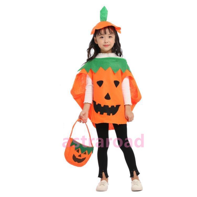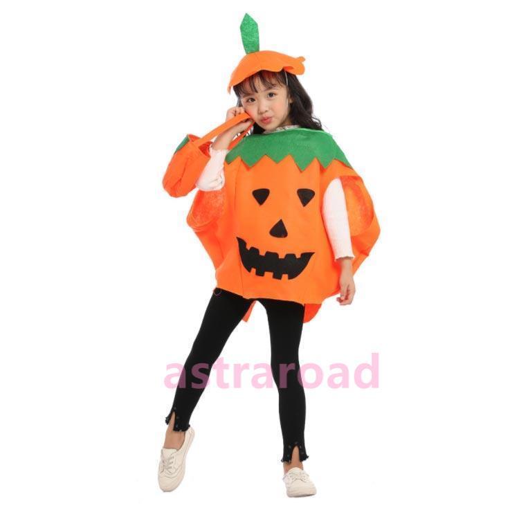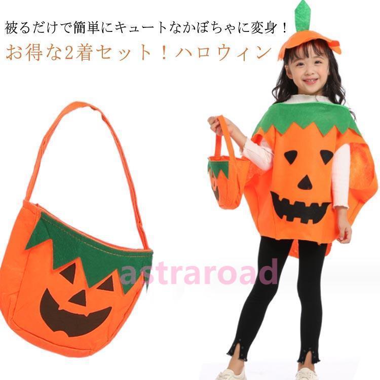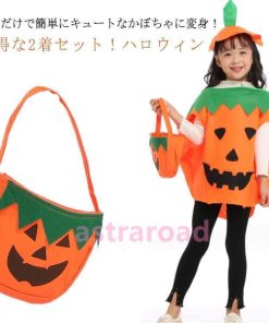 お得な2着セット! コスプレ こども かぼちゃ パンプキン 衣装 子供 仮装 帽子 カボチャ 女の子 男の子 子