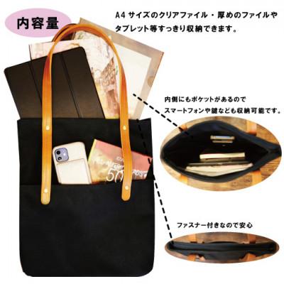 ふるさと納税 守谷市 倉敷産帆布×本革 [A4サイズ対応]縦長トートバッグ(黒×黒)