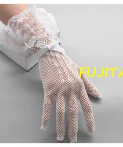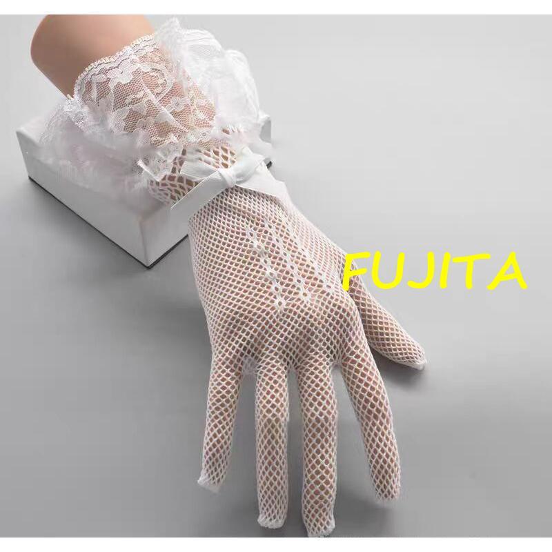 ウェディンググローブ レディース 女性 ウェディング小物 ブライダル 手袋 ショート メッシュ レース リボン ホワイト ブラック 無地 上品 おしゃ