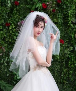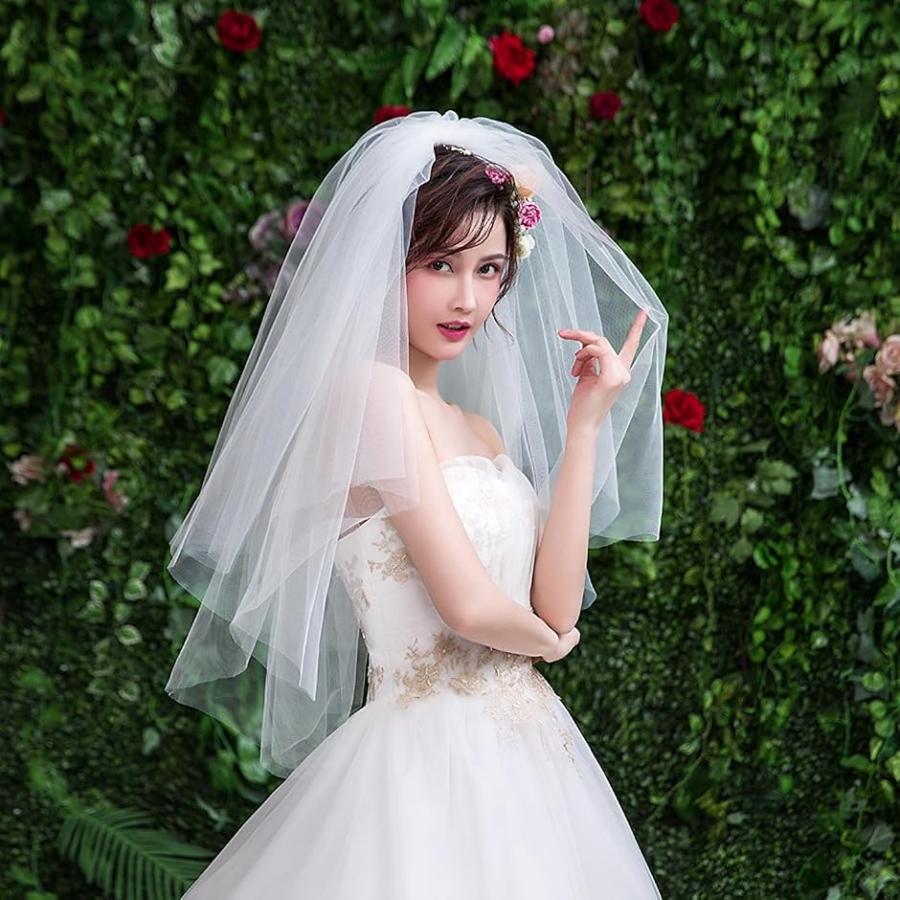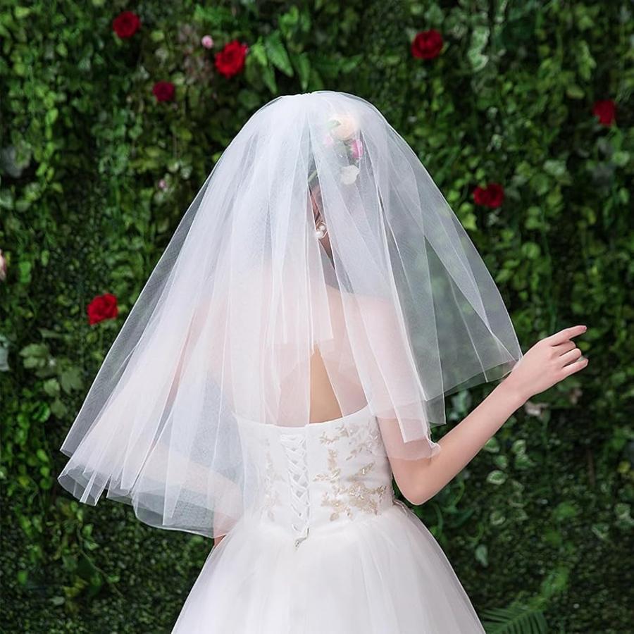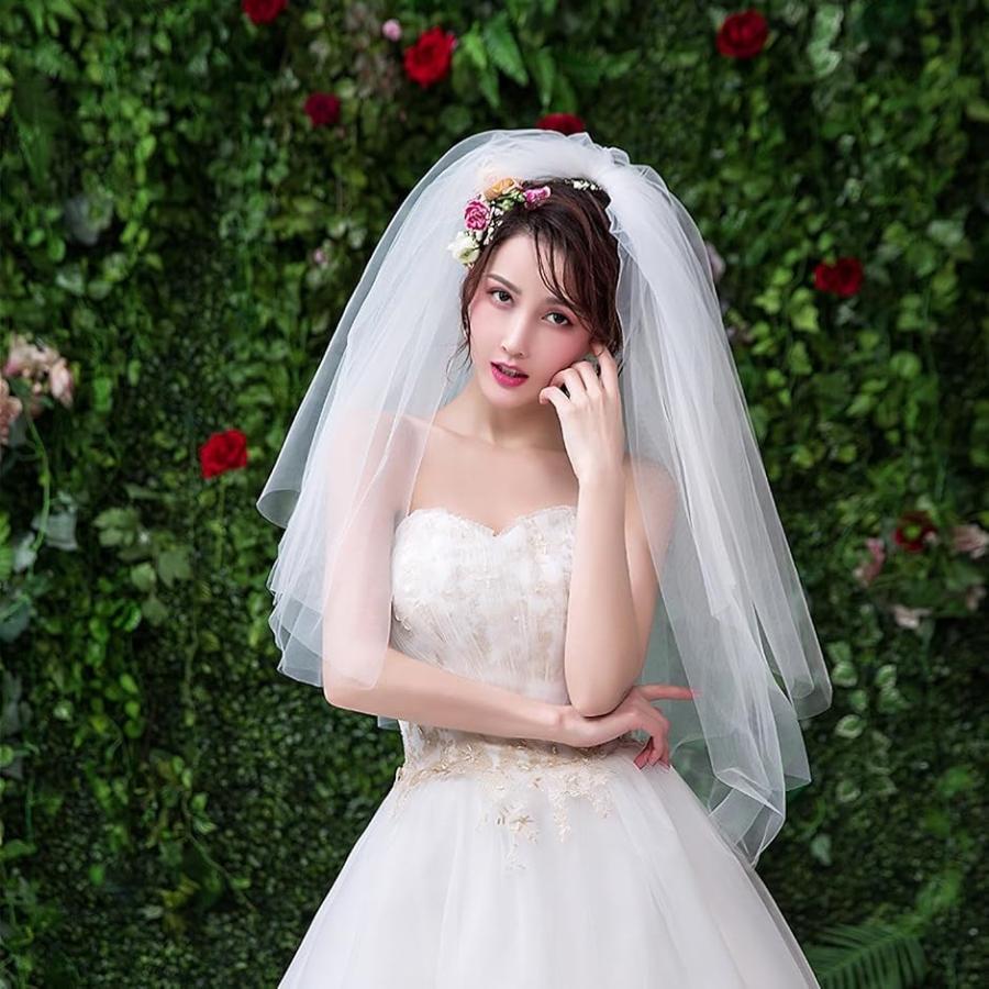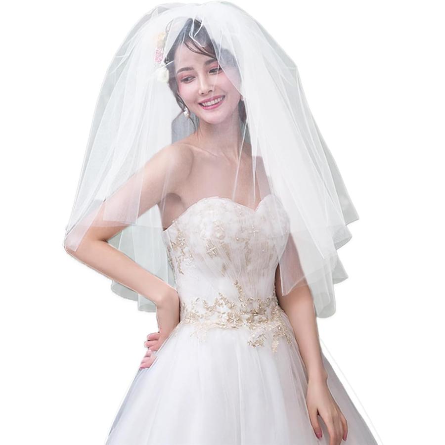 ウエディングベール パーティー 結婚式 ヘッドドレス ウエディングドレス ヴェール 結婚式用(ホワイト(B-2), レギュラーサイズ)