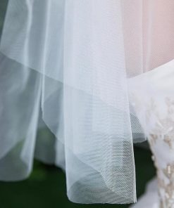 繊細なレースが彩るエレガントなベール やわらかなチュール素材に縁取りレースを施した2層タイプのウェディングベール。