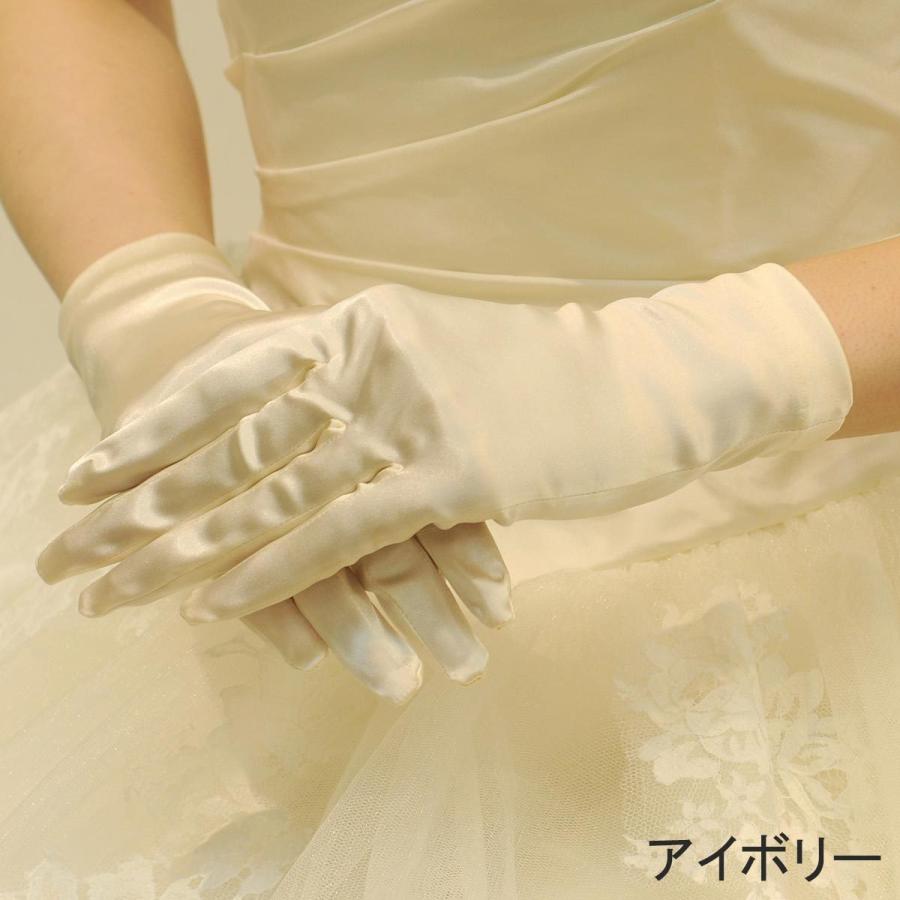 ウエディング グローブ ショート サテン 22cm ブライダル 日本製 ホワイト オフホワイト アイボリー ウエディンググローブ ショートグローブ