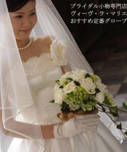 ウェディングドレスやウエディングベールのデザインを選ぶことなく、合わせやすいグローブです。
