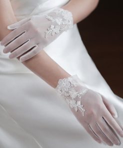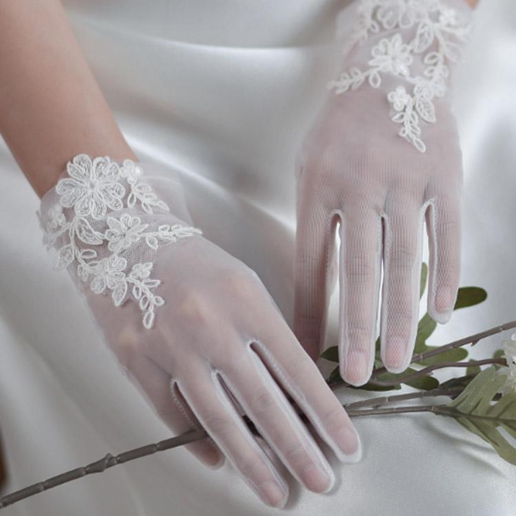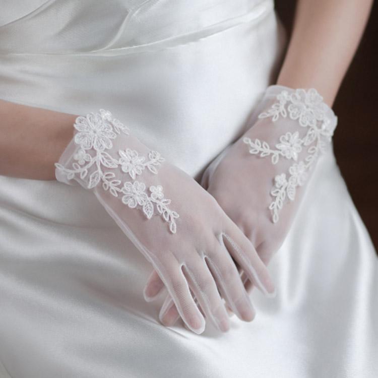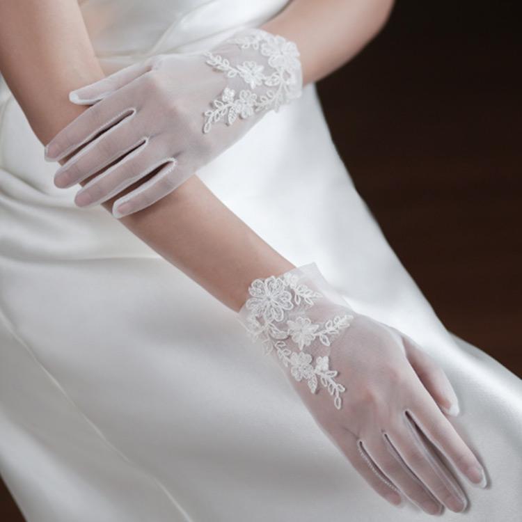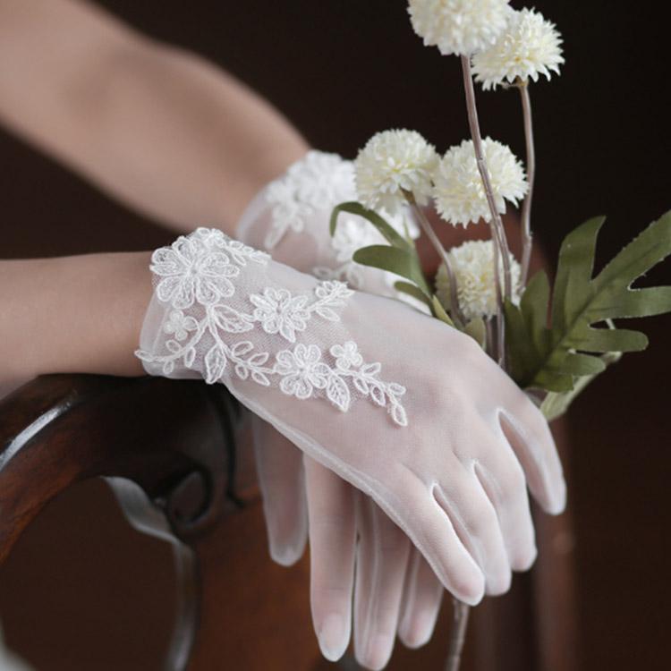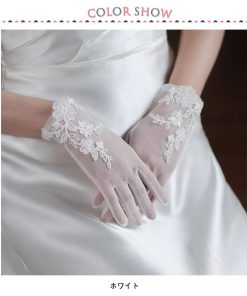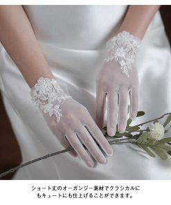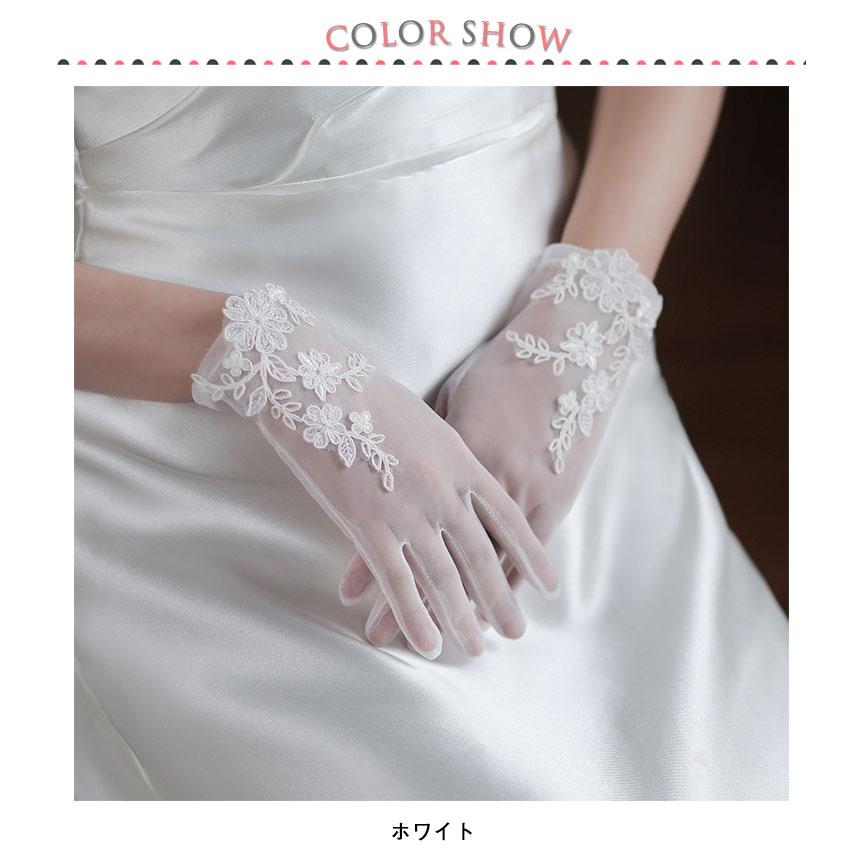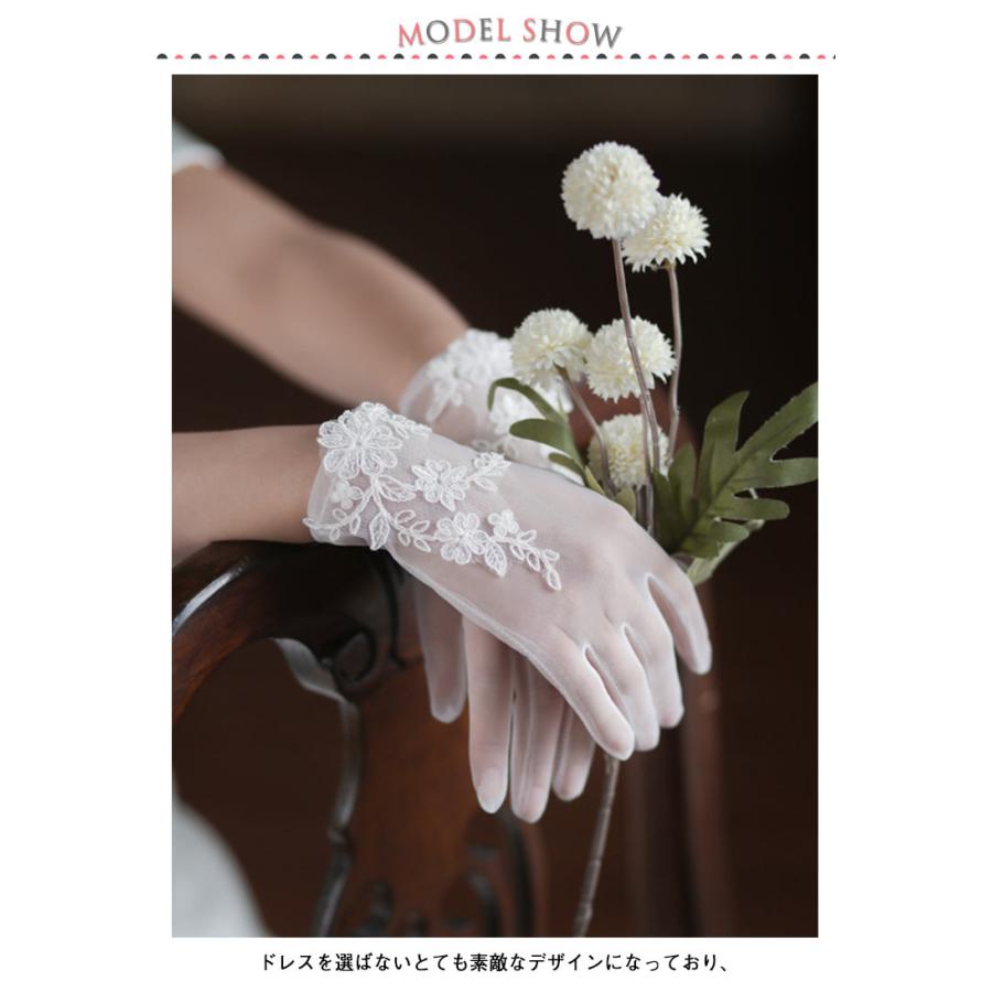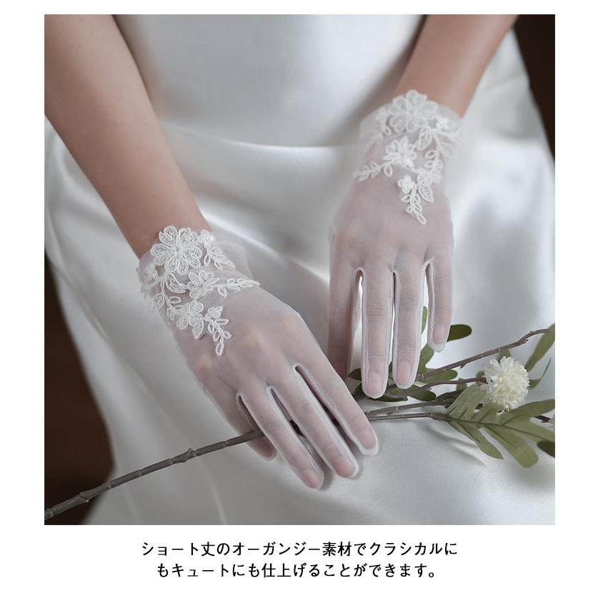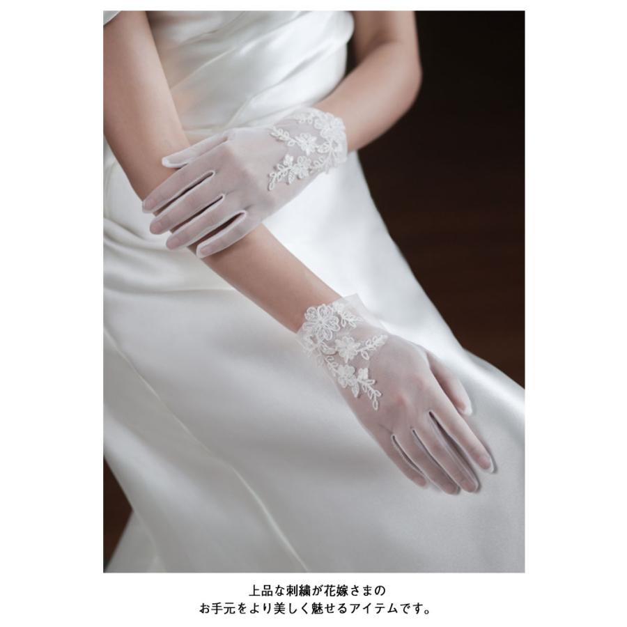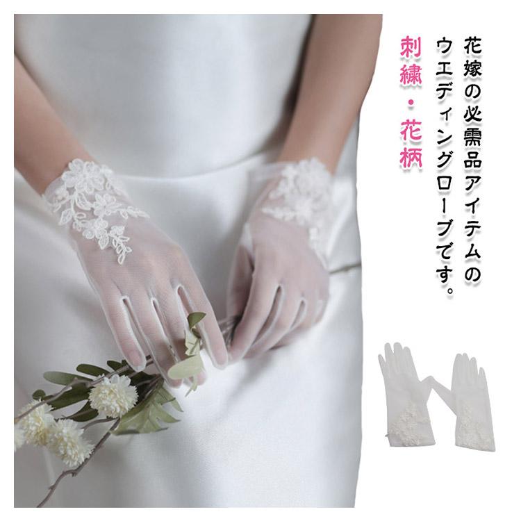 ウエディング グローブ ショート ショートグローブ オーガンジー手袋 白 刺繍 花柄 ウェディンググローブ 花嫁ドレス用 レース