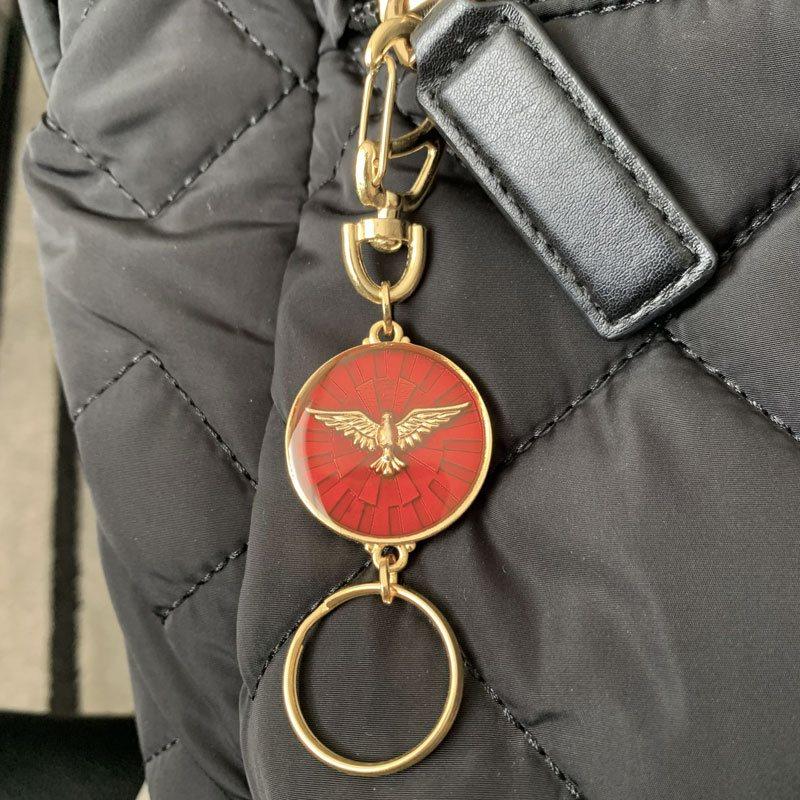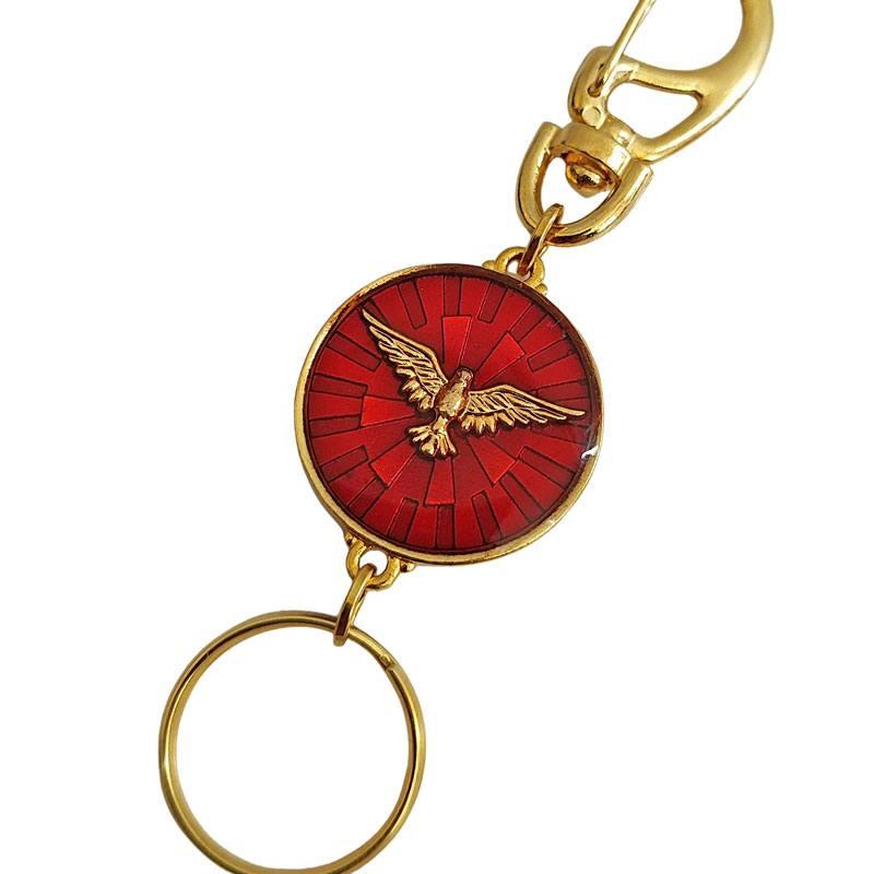 エスピリトサント両面キーホルダー Holy Spirit 鳩 ゴールド×レッド ブラジルのお守り