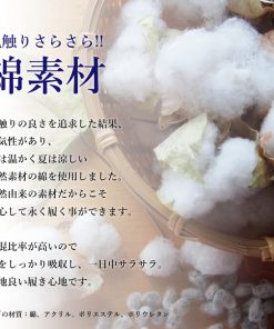 また綿は、通気性と肌触りの良さが優れていて汗も吸収してくれるので、サラッとした快適な履き心地を得ることができます。