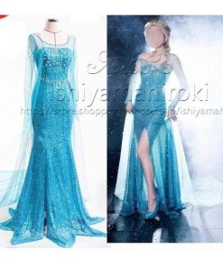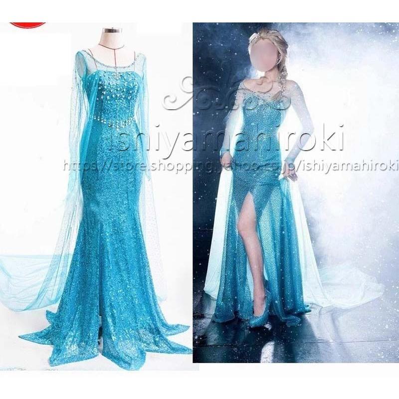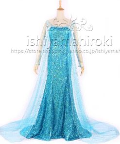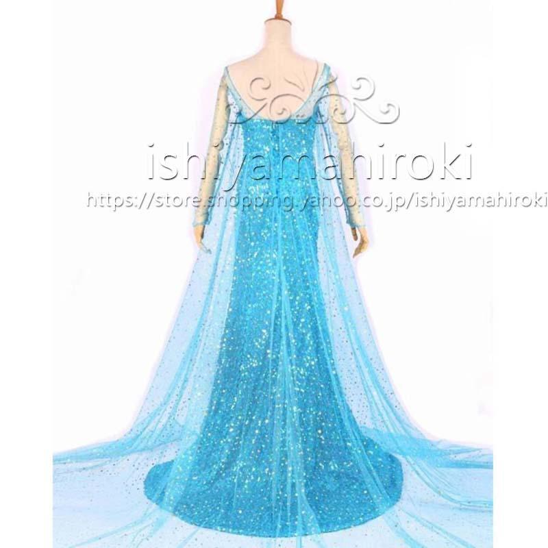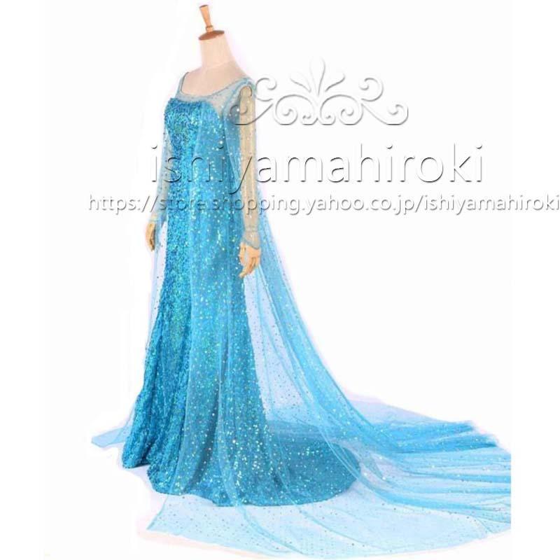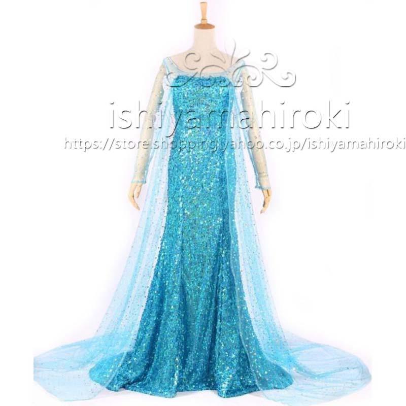 エルサ ドレス 大人用 子供用 コスプレ 衣装 アナと雪の女王 ハロウィン 綺麗 雪 パーティ キラキラ 青|Mサイズ