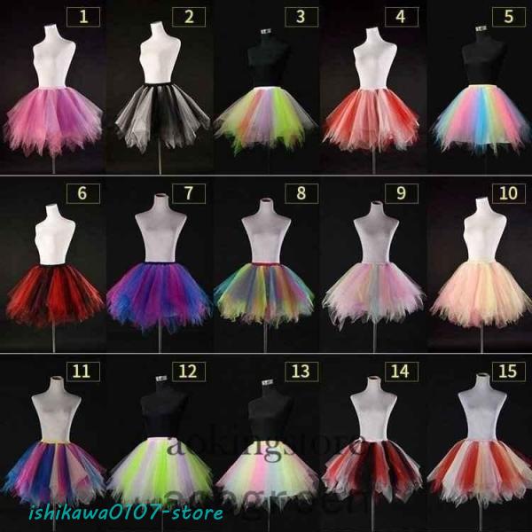 カラフル15色パニエ ボリューム感たっぷりのチュチュスカート、ふんわりボリュームアップ、ウエスト調節可能、大人用 18cqz08