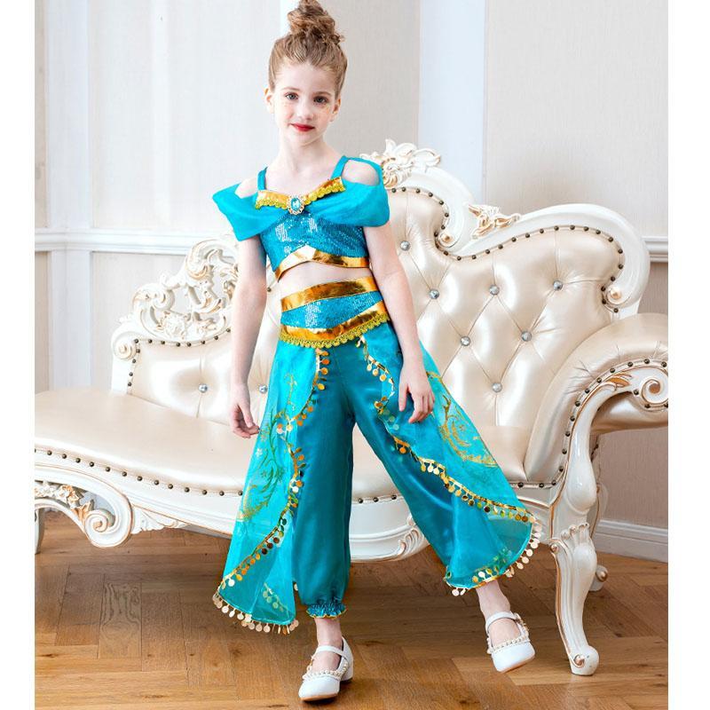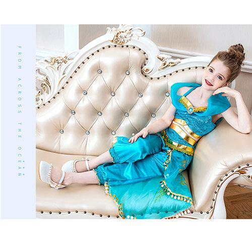 ジャスミン アラジン ドレス ワンピース キッズ 子供 用 ハロウィン 衣装 コスチューム コスプレ 仮装 女の子 プリンセス 子ども ティアラ お姫様 誕生日