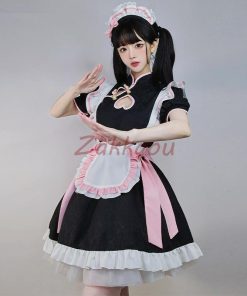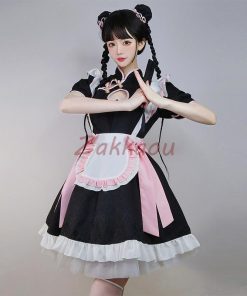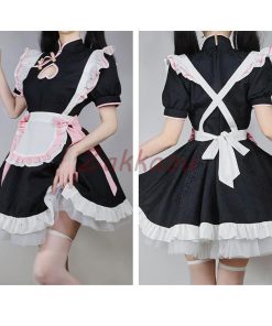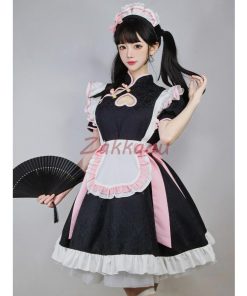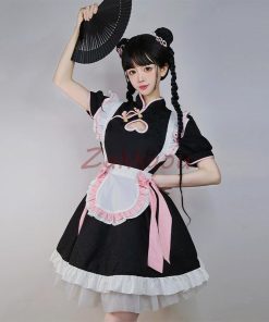チャイナ メイド服 コスプレ チャイナドレス ワンピース ロリータ 半袖 仮装 レディース 萌え こすぷれ 可愛い 喫茶店 蝶結ぶ