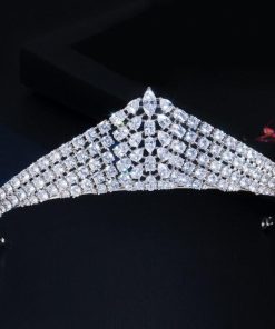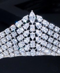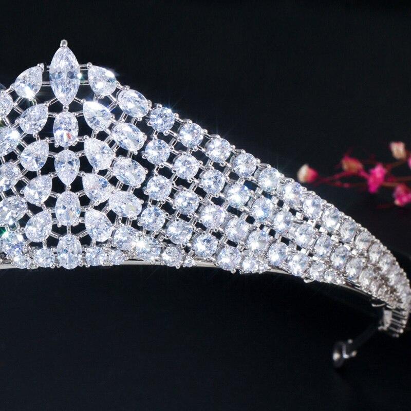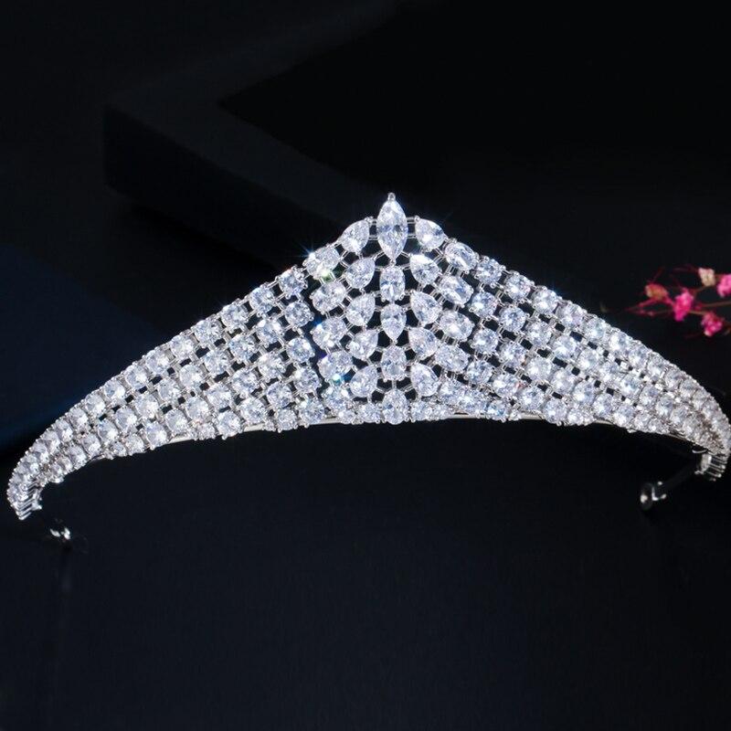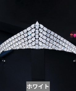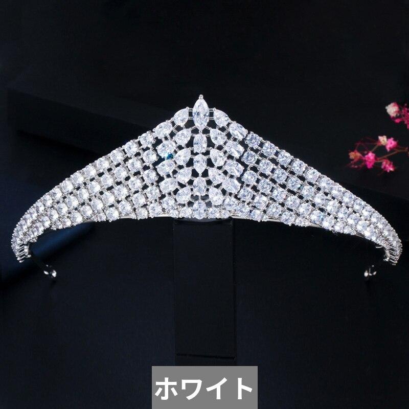 クラシック 白 ホワイト キュービック ジルコン ジルコニア クリスタル 水晶 結婚式 ウェディング ジュエリー 大きい 幅 ブライダル ティアラ お姫様 プリンセス クラウン 王冠 ヘアー アクセサリー