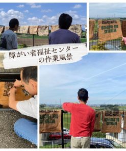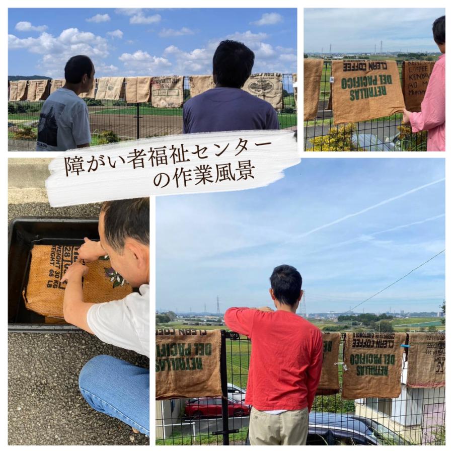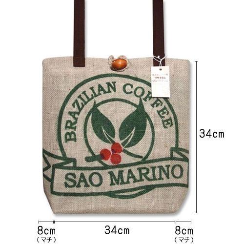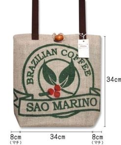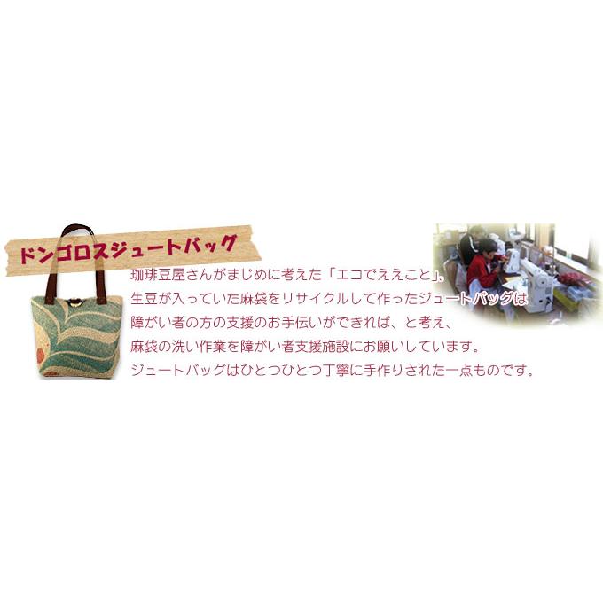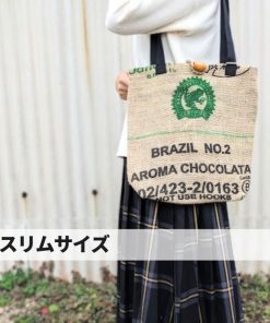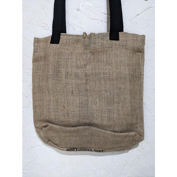 コーヒー生豆の入っていた麻袋(フードジュート)を再利用し、麻袋のざっくりとした風合いを生かしたナチュラルなバッグです。麻袋の選別後一枚一枚を手洗いし、ひとつひとつ丁寧に仕上げました。柄の出方や組み合わせが違うため、同じもののない一点ものです。