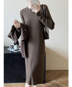 ニット ワンピース レディース 大人 ロング丈 秋 冬 長袖 体型カバー 小顔ニット ゆったり 可愛い かわいい おしゃれ 綺麗