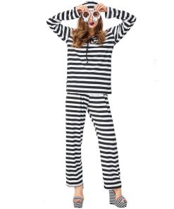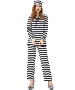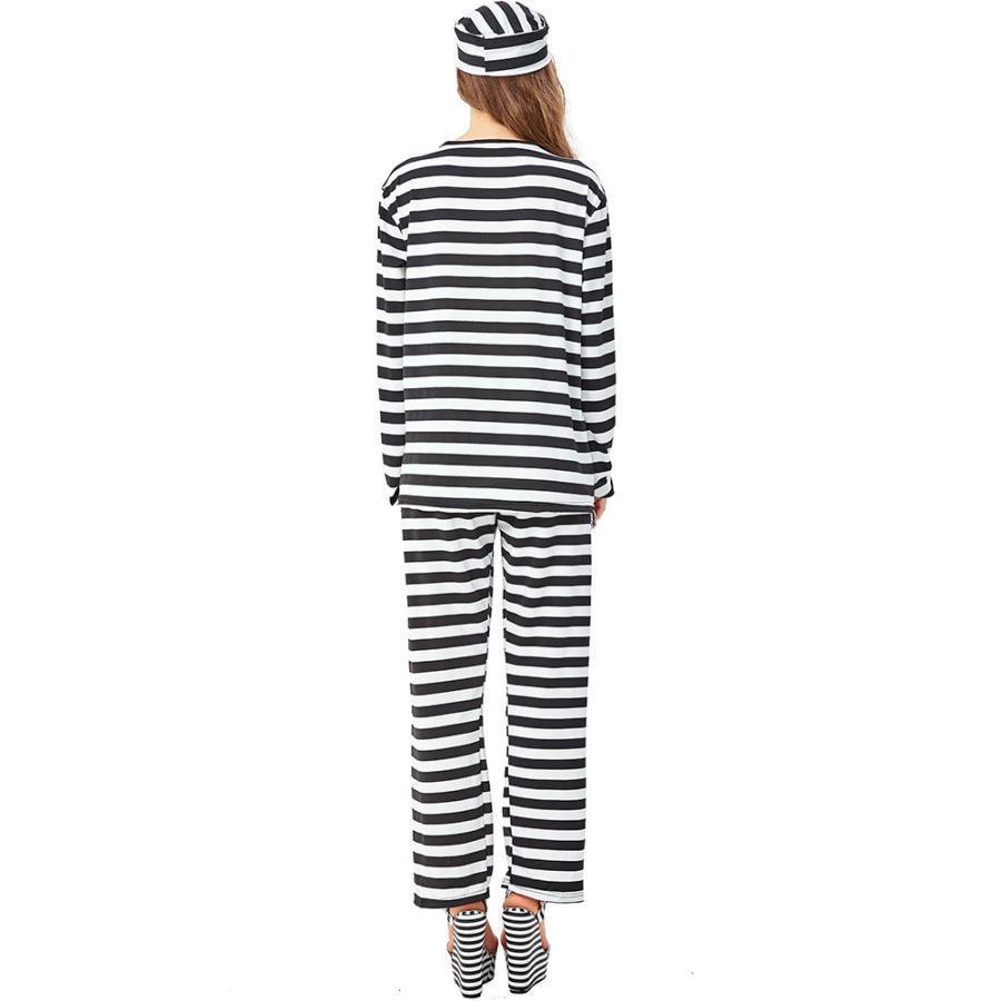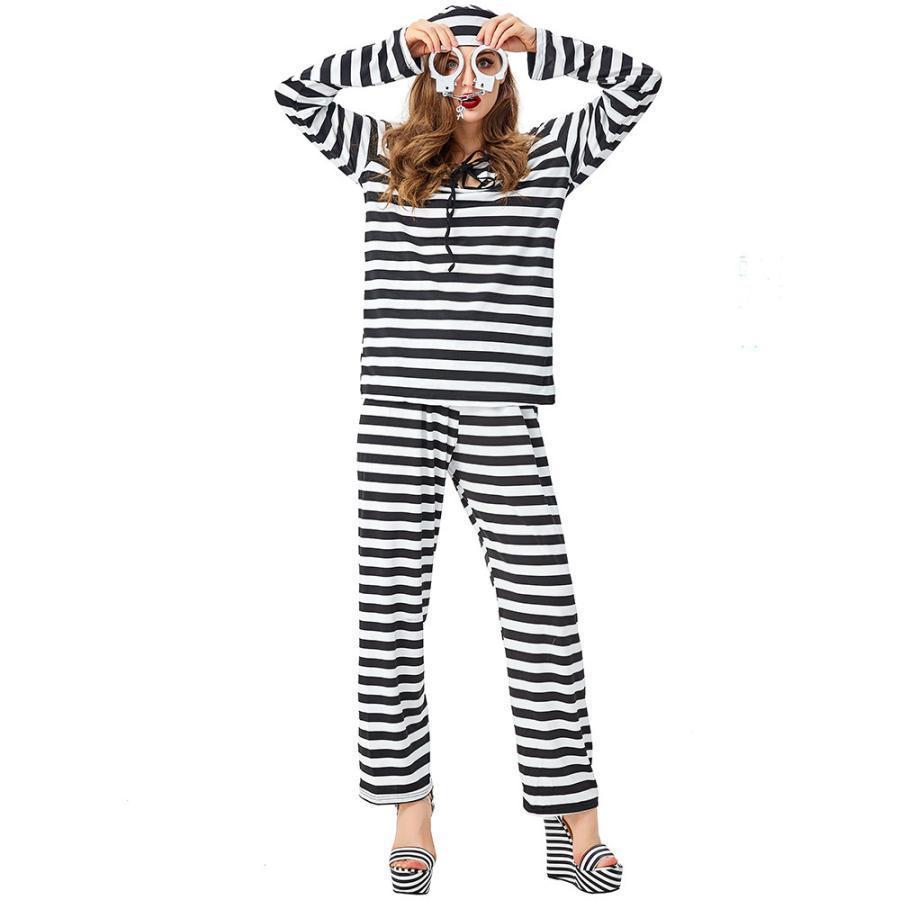 ハロウィン衣装 大人用 女性用 囚人服 長袖 白黒ボーダー柄 コスプレ 犯人 コスチューム 囚人 ハロウィン 衣装 ポリス 軍服 レディース ガールズ