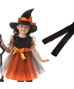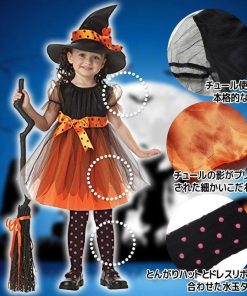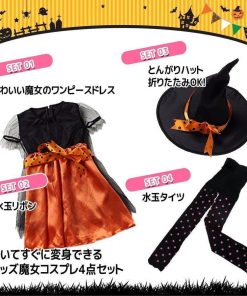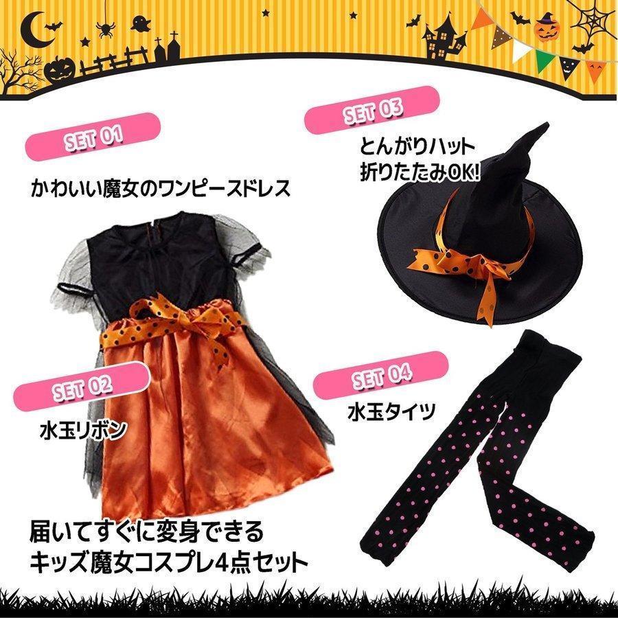ハロウィン コスプレ 魔女 子供 女の子 衣装 仮装 可愛い 帽子 タイツ付き ドレス ワンピース キッズ ウィッチ 魔女っ娘