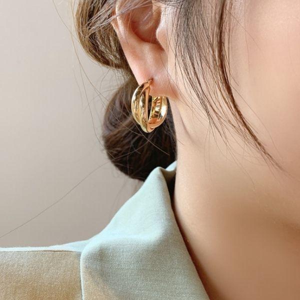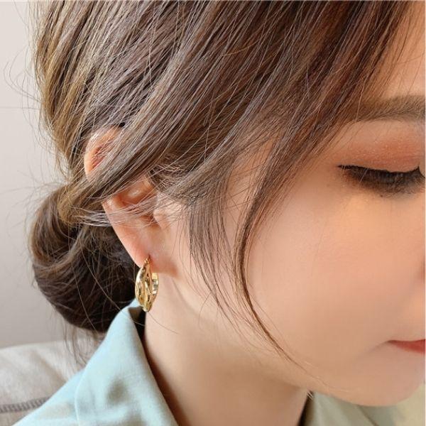 上品なデザインのフープピアス。