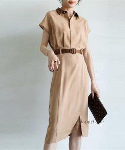 フォーマル ワンピース シャツ風ワンピース エレガント レディース 通勤ワンピース OLオフィス 事務服 きれいめ 半袖 春夏 おしゃれ Aライン ロング丈ワンピース