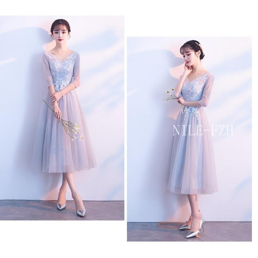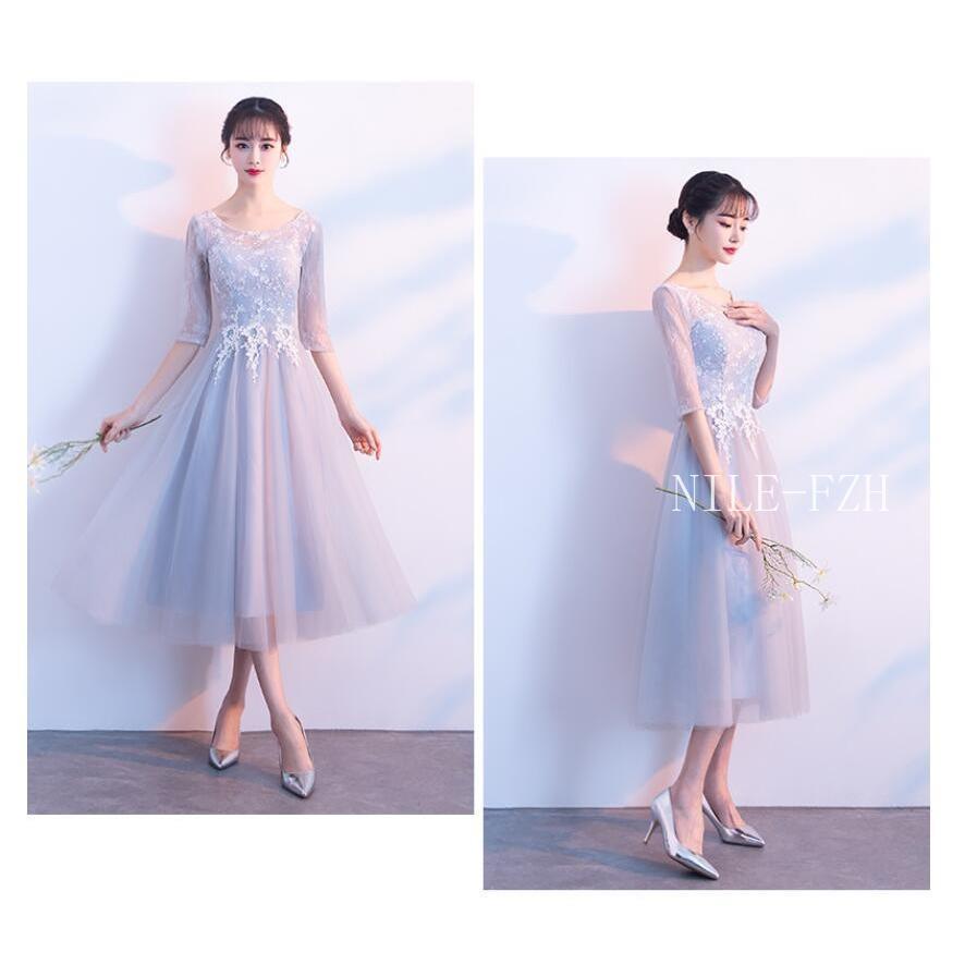ブライズメイド ドレス 上品 ミモレドレス 演奏会 二次会 パーティードレス 披露宴 結婚式ワンピース ウェディングドレス 謝恩会 花嫁ドレス コーラス衣装