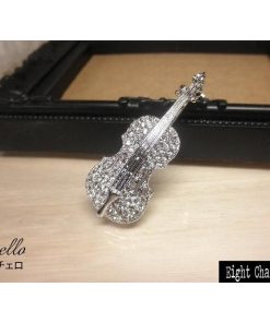 ピアノ バイオリン チェロ ハープ 楽器をモチーフしたラインストーンブローチです。