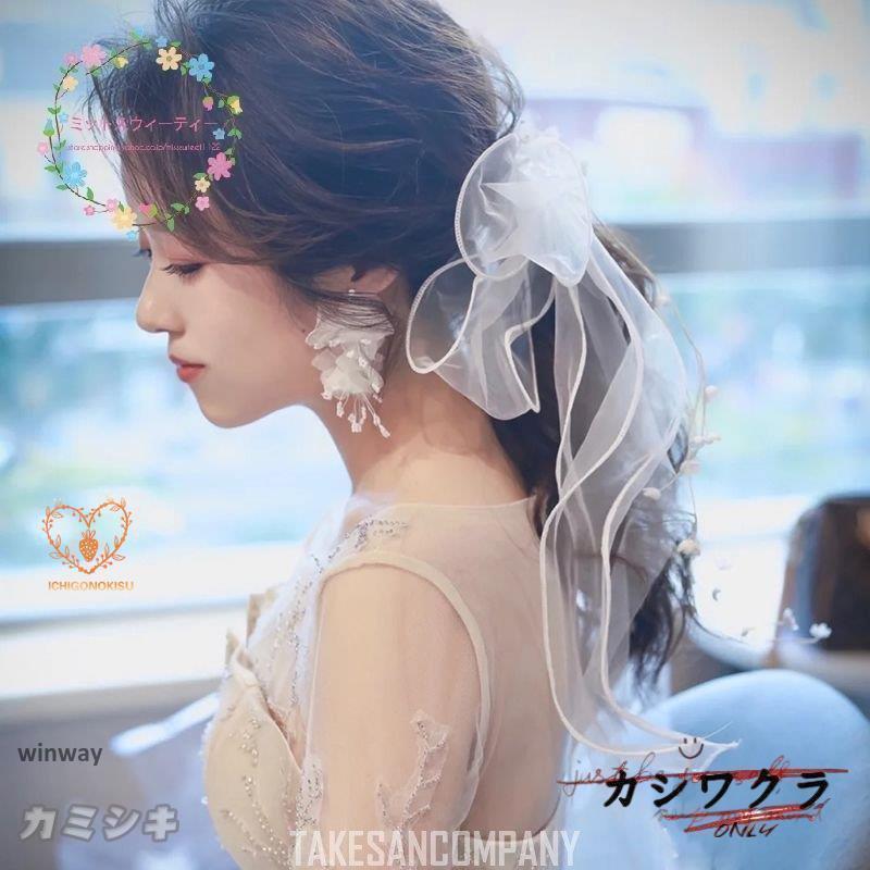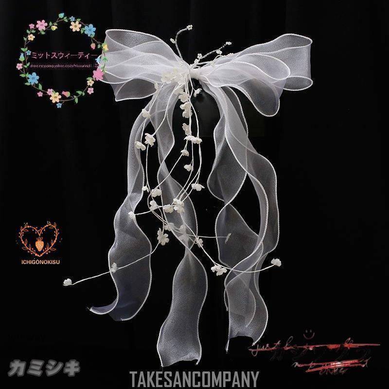 ヘッドドレス ウェディング 髪飾り チュール リボン ヘアアクセサリー ブライダル 結婚式 成人式 卒業式 リゾート 結婚アクセサリー ウェディングフォト