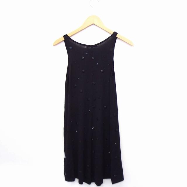 マーキュリーリュクス MercuryLUX ワンピース ニット 装飾 Uネック ノースリーブ ひざ丈 F ブラック 黒 /FT32 レディース