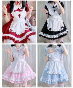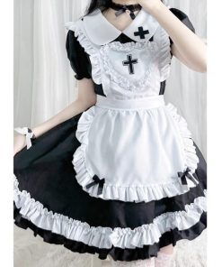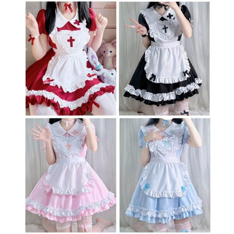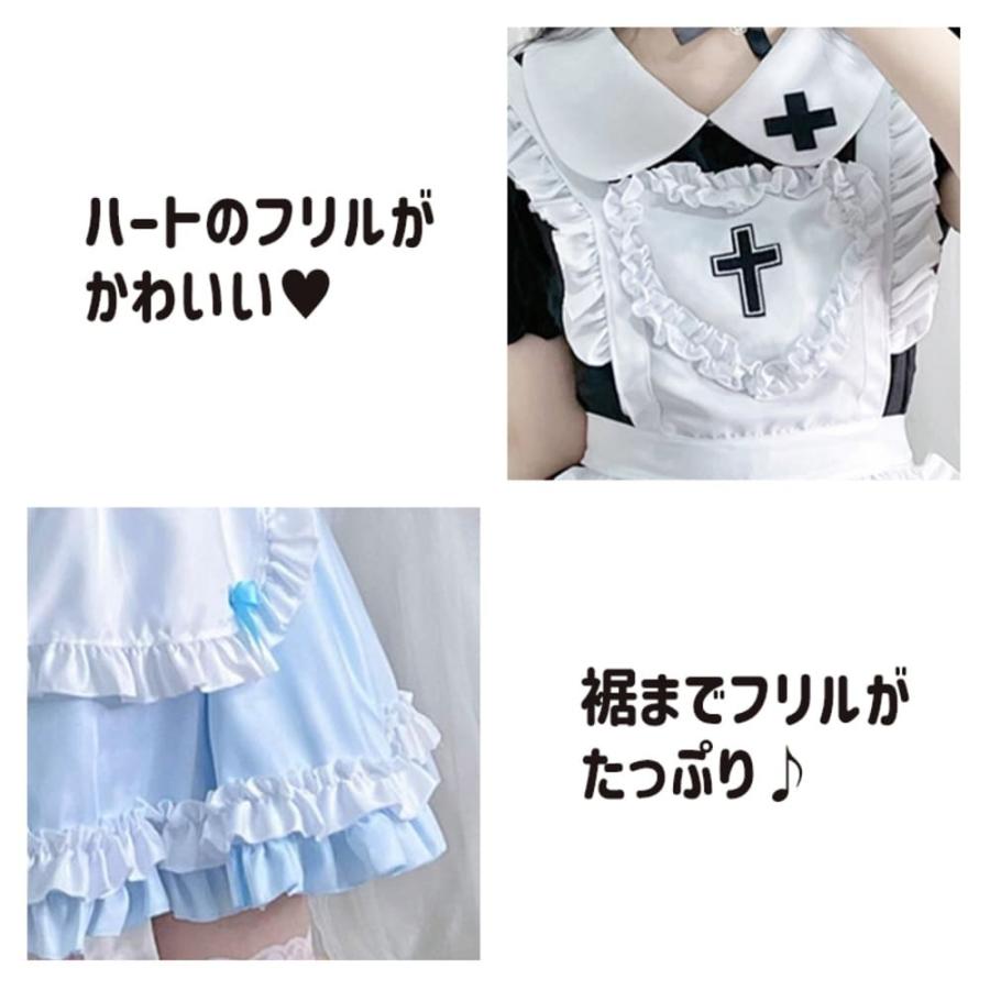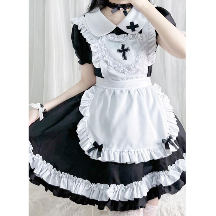 メイド服 十字架 コスプレ 衣装 フリル ロリータ ミニスカ ドレス 修道女 ハロウィン シスター 黒
