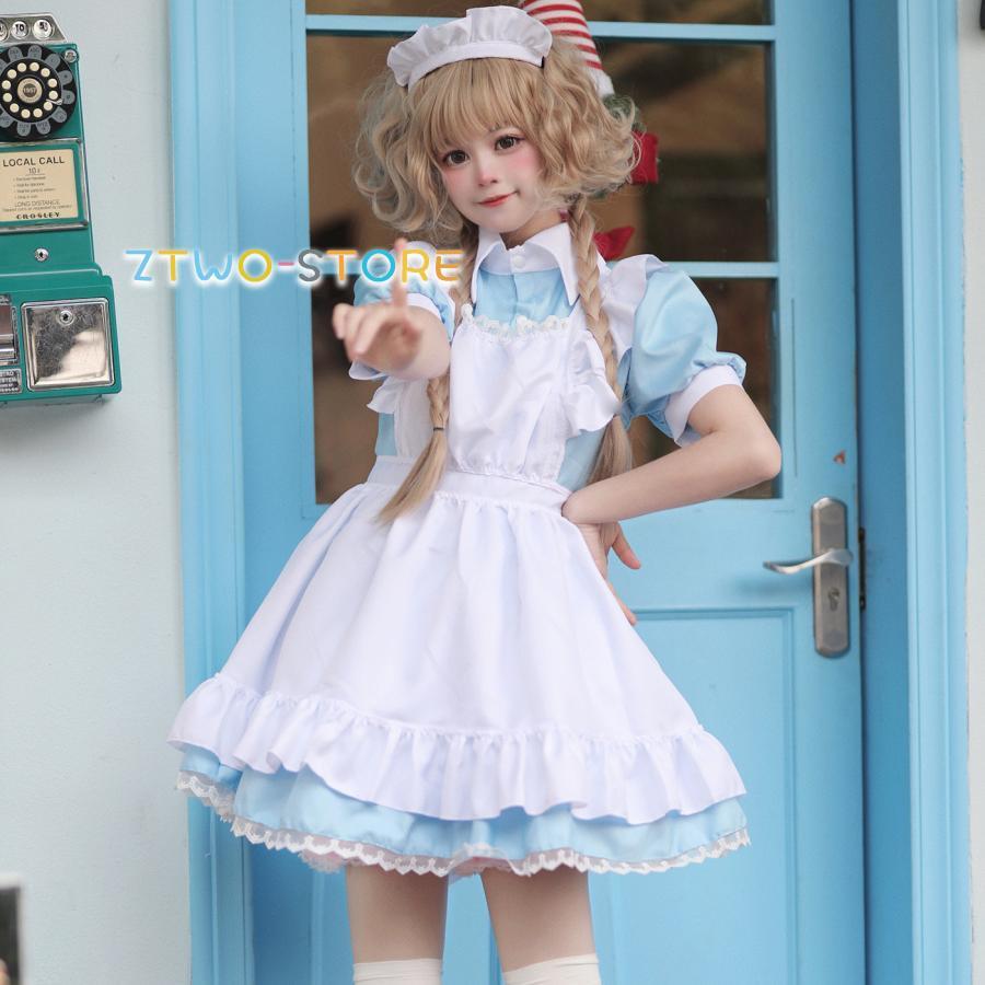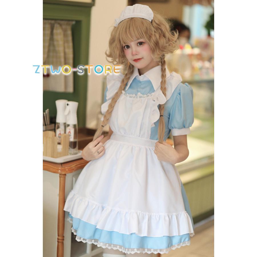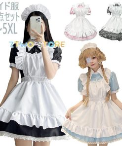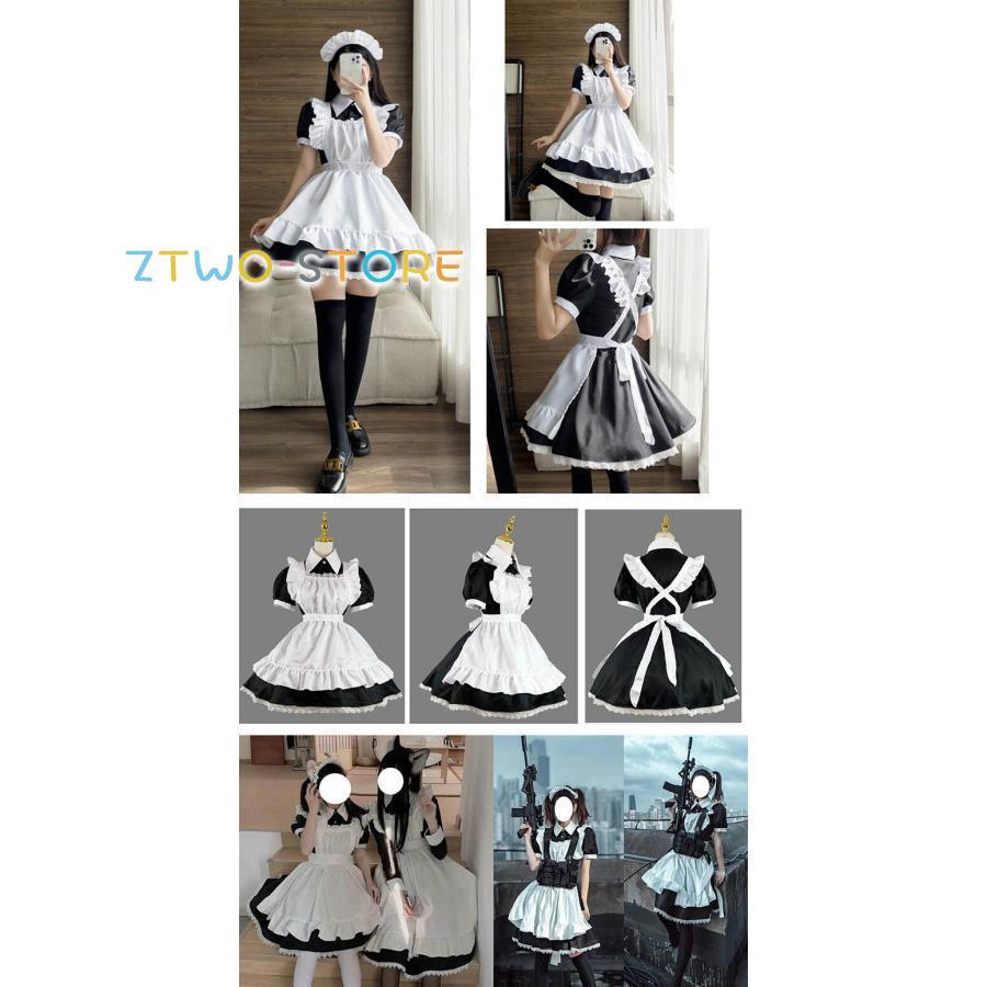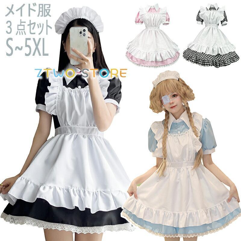 メイド服 半袖 ショート丈 定番 大きいサイズ 女装 ゴスロリ ワンピース 仮装 レディース 可愛い カチューシャ付き コスプレ カフェ 学園祭 文化祭