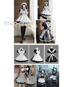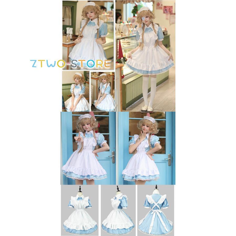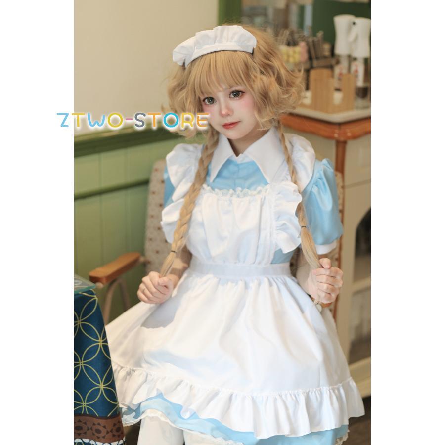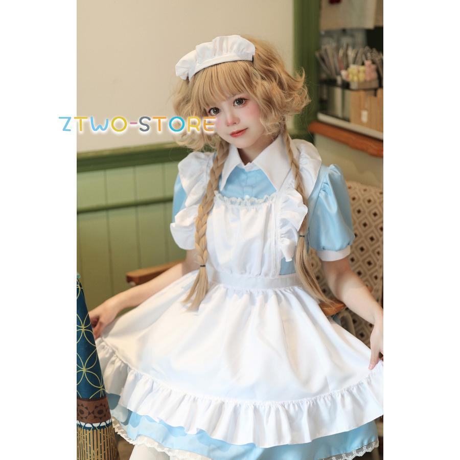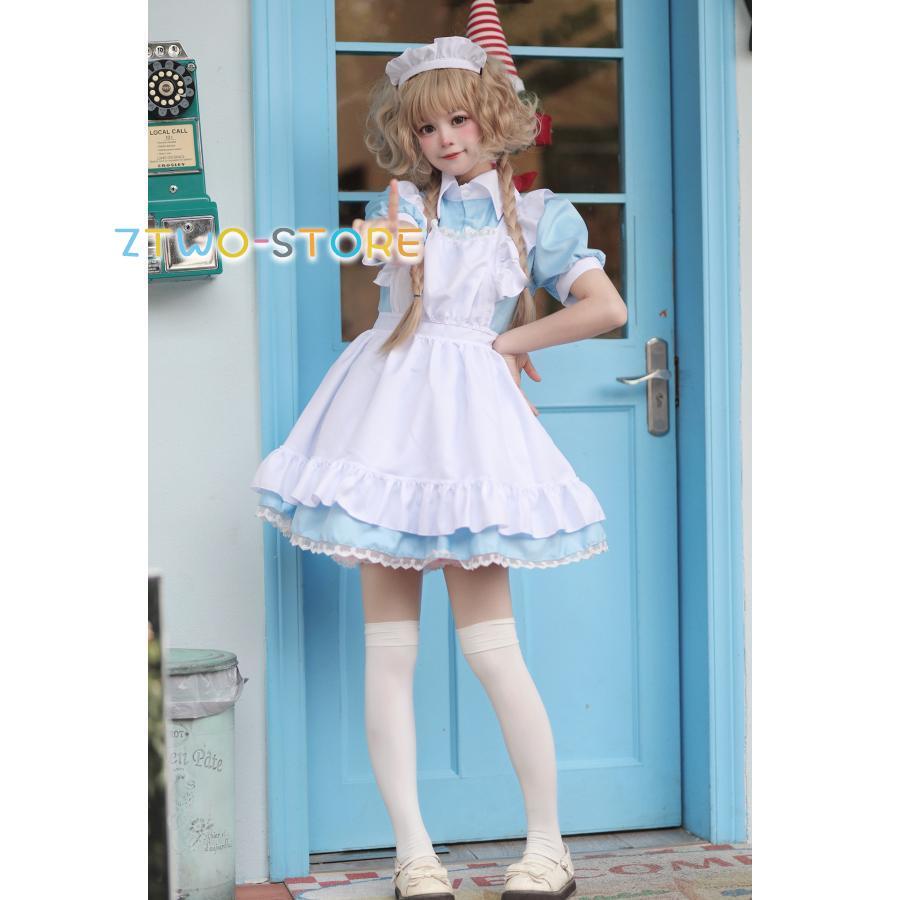 メイド服 半袖 ショート丈 定番 大きいサイズ 女装 ゴスロリ ワンピース 仮装 レディース 可愛い カチューシャ付き コスプレ カフェ 学園祭 文化祭