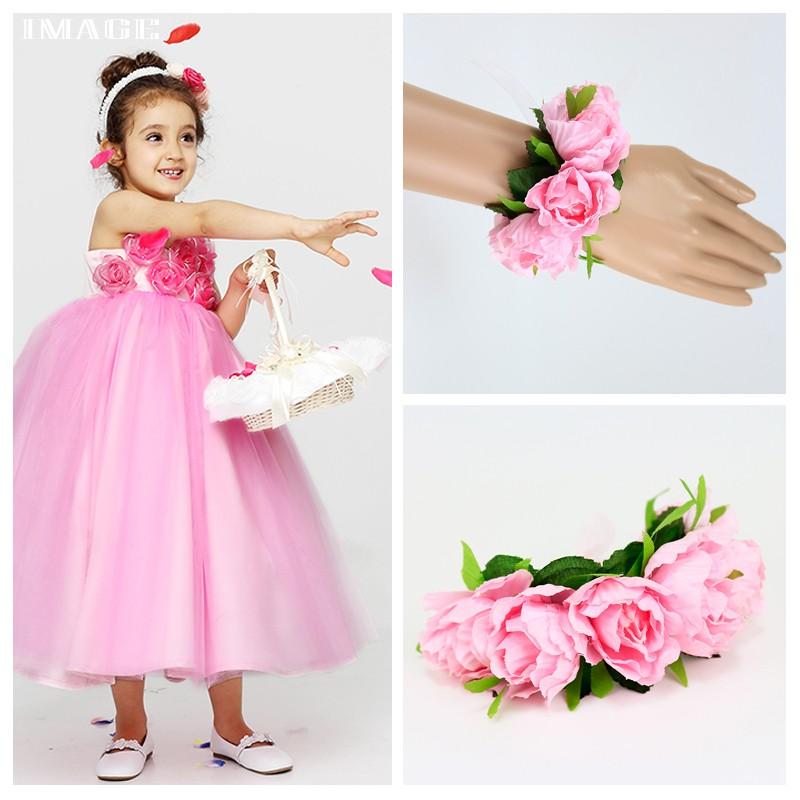リストレット 花 ヘッドドレス ピンク ばら 子供 ブライダル 在庫一掃セールタトゥーシール 贈呈対象 コサージュ fhrs02pk