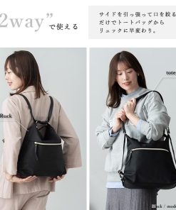 ショルダーのサイドを引っ張って口を絞るだけでトートバッグからリュックに早変わり!
