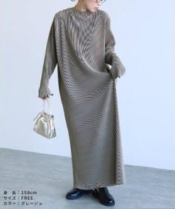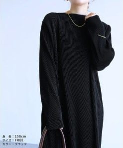 レカ reca セルフカット長袖マキシプリーツワンピース(bel-blc-6404) (ブラック)