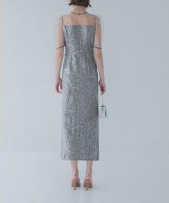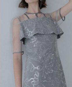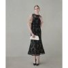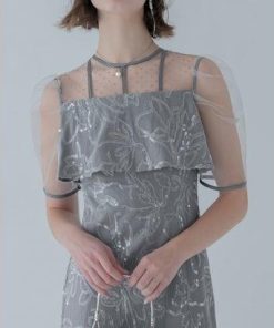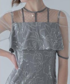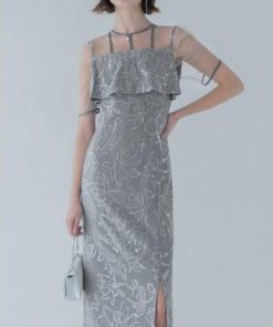 レジャ Leja ドットチュールフラワースパンコールIラインドレスワンピース美脚効果結婚式 パーティードレス 成人式 二次会 同窓会 お呼ばれ オケー