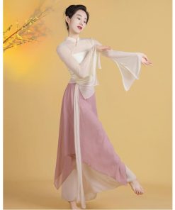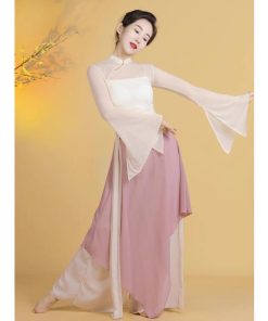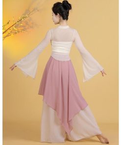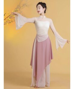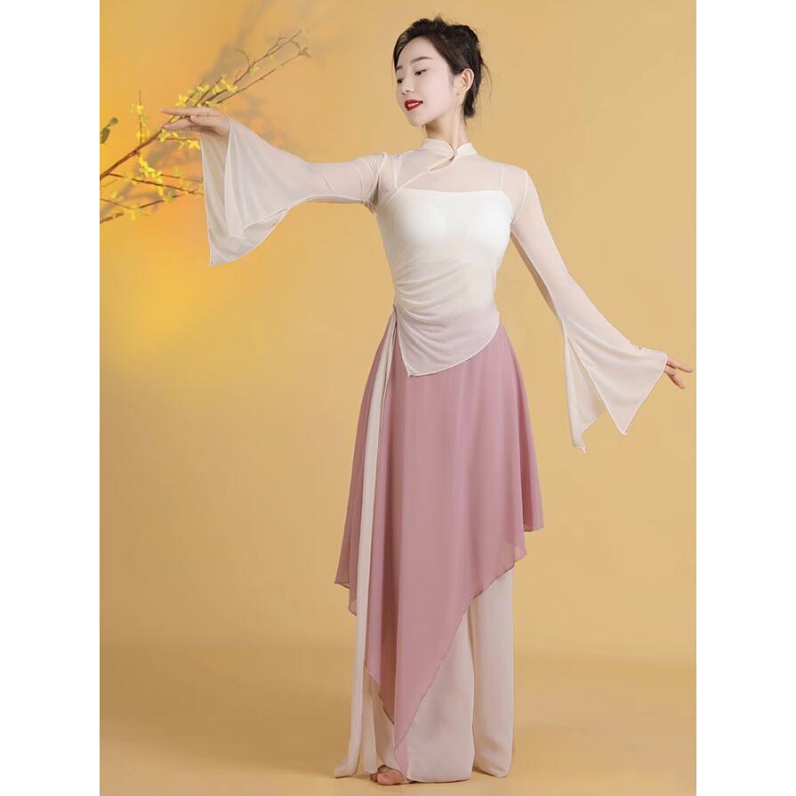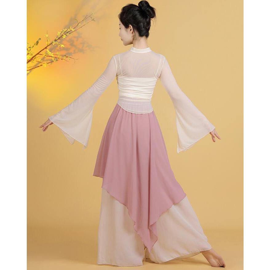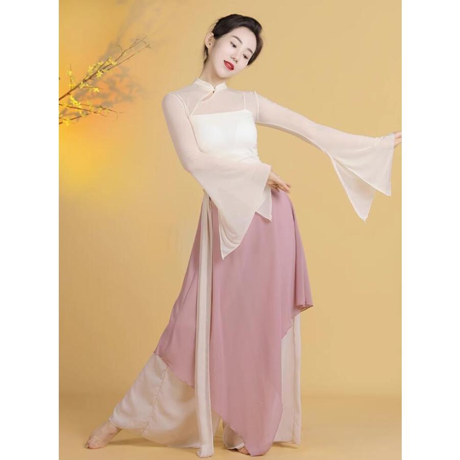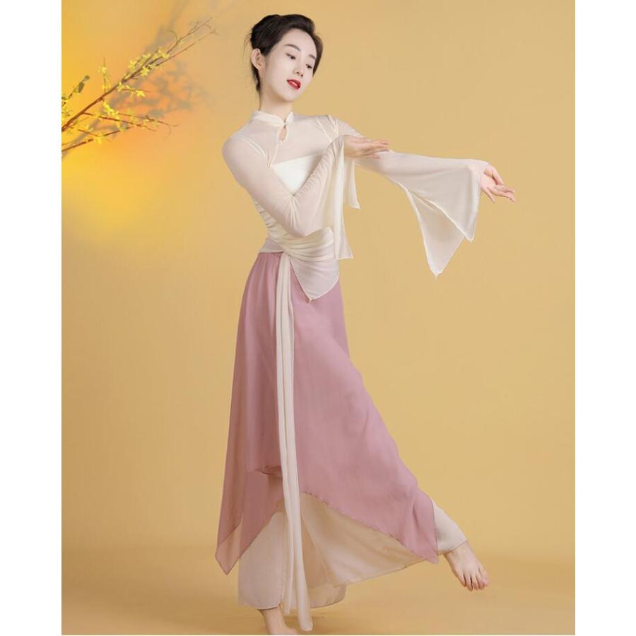 レディース古典バレエダンス衣装 チュールtシャツ 不規則裾ガウチョパンツ スカーチョ風サルエルパンツ 優雅な社交ダンス衣装 単品/3点セット 女性バレエ