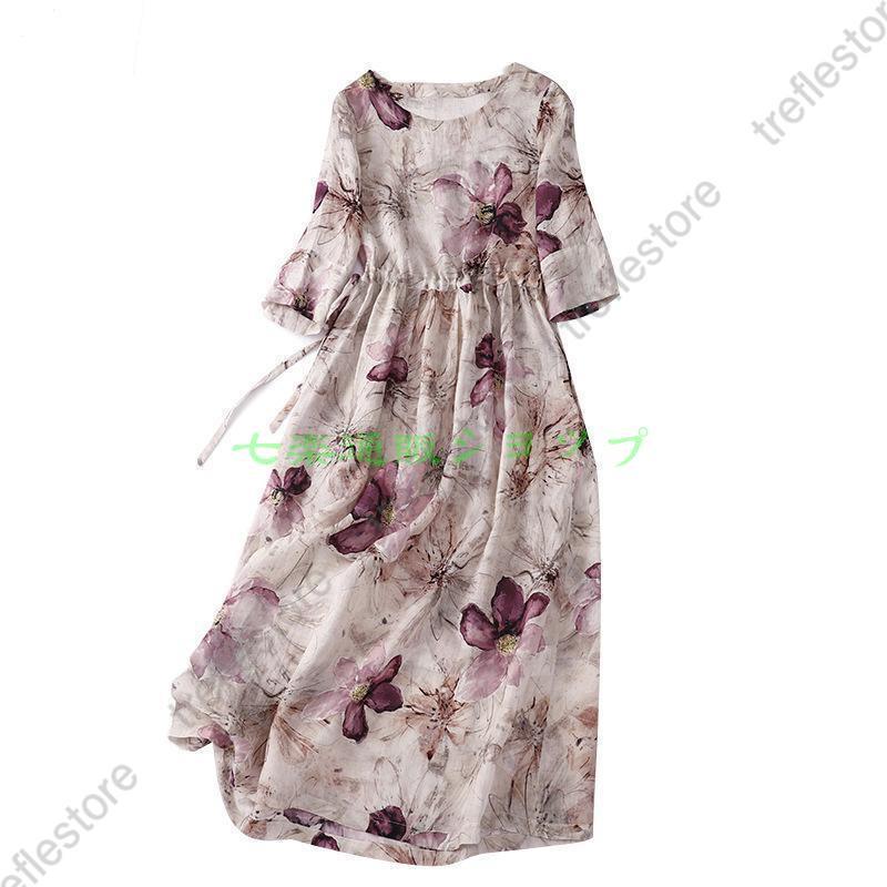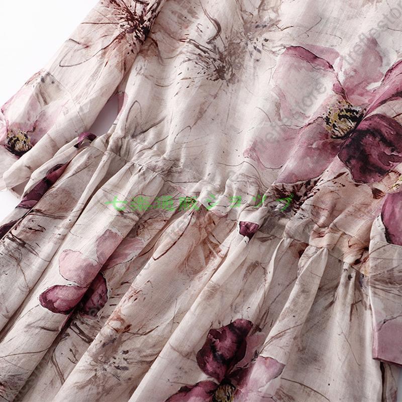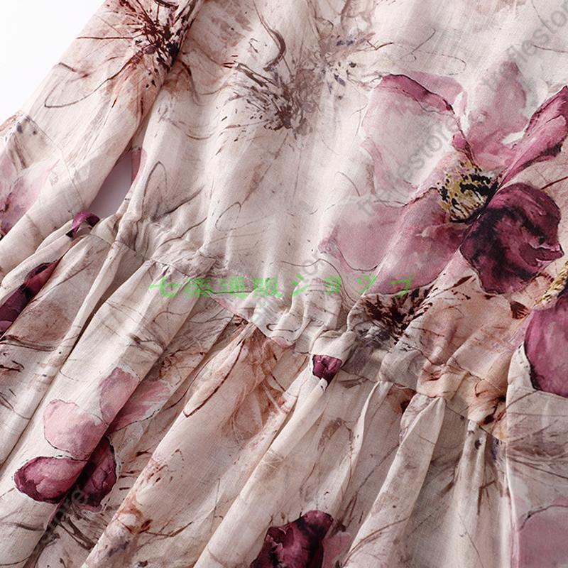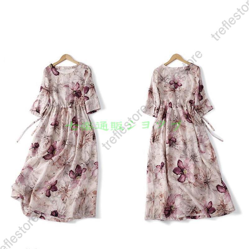 ワンピース レディース 40代ワンピース 夏 秋 半袖 ワンピースプリント柄 花柄 マキシワンピース Vネック オシャレ 通勤 ドレス お出かけ 大人 30代 50代