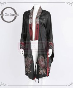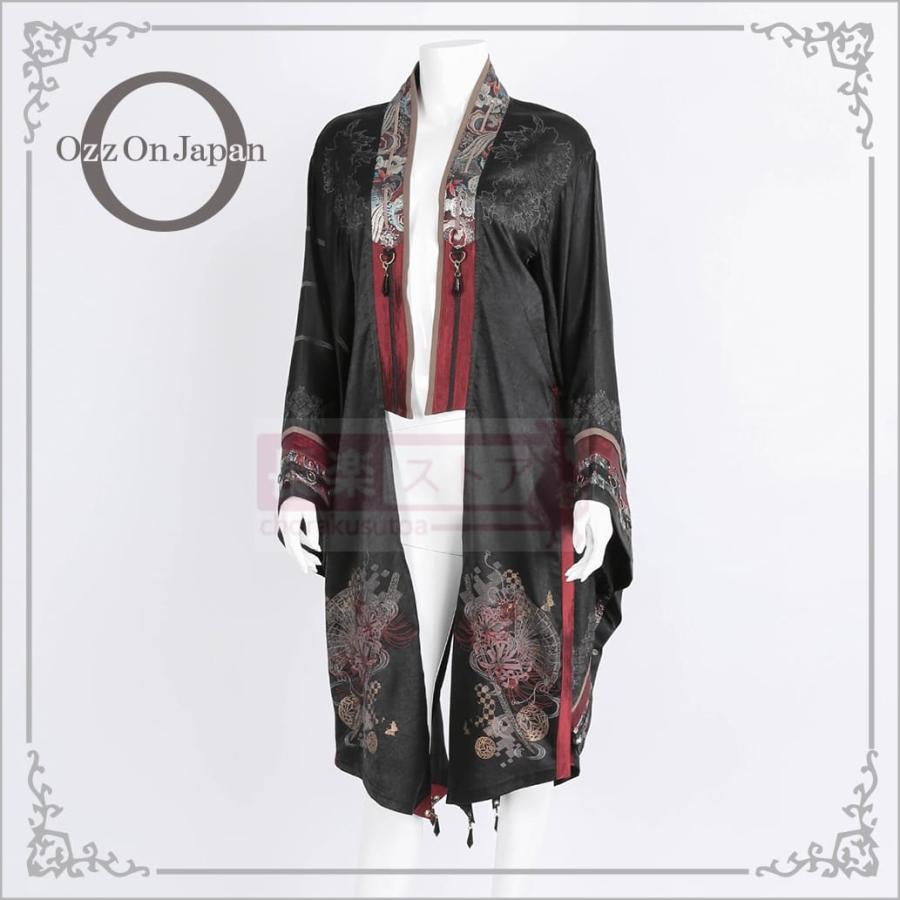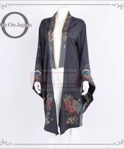 中華風和風ゴールド刺繍プリント薄手の振袖ロングコート