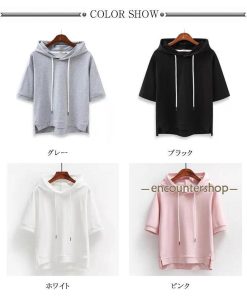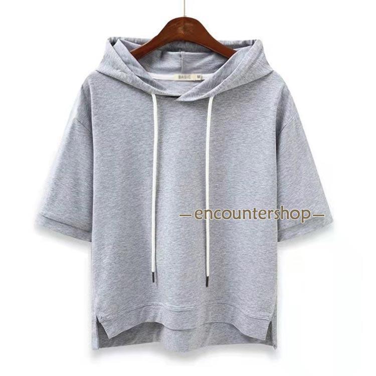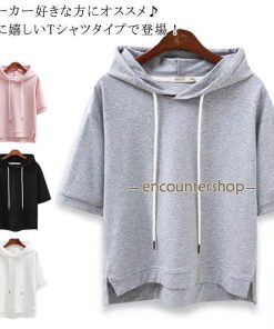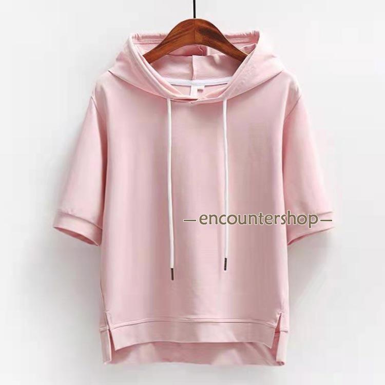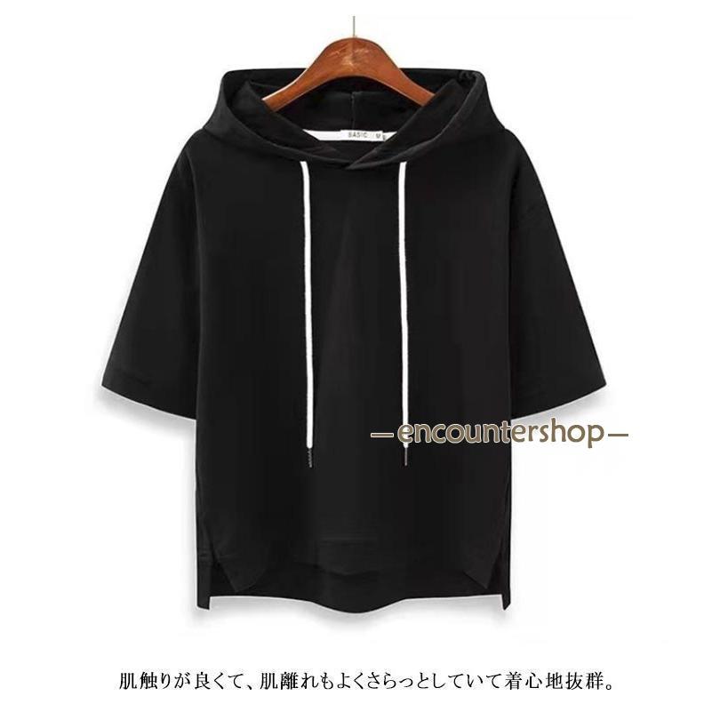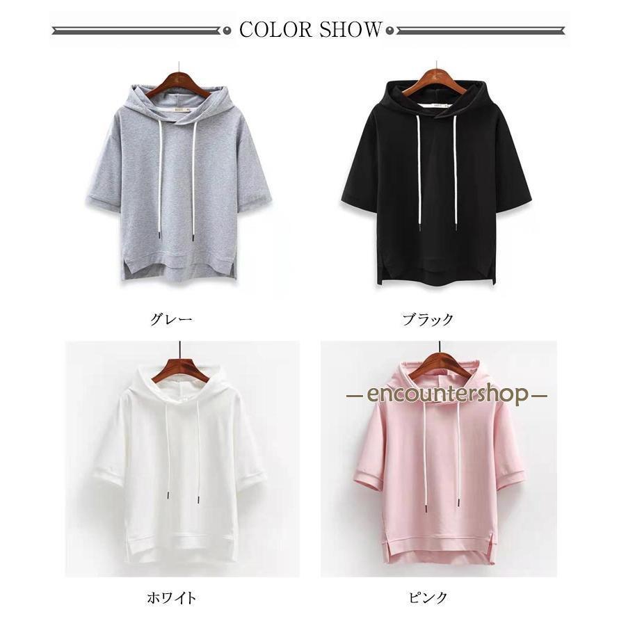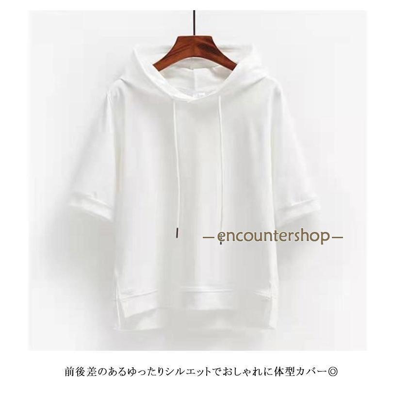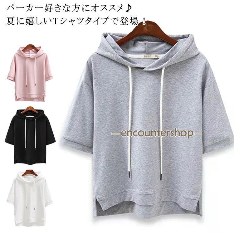 半袖パーカー パーカー Tシャツ カットソー レディース 半袖 プルオーバーパーカー フーディTシャツ 無地 プルオーバー フード付きtシャツ 夏パー