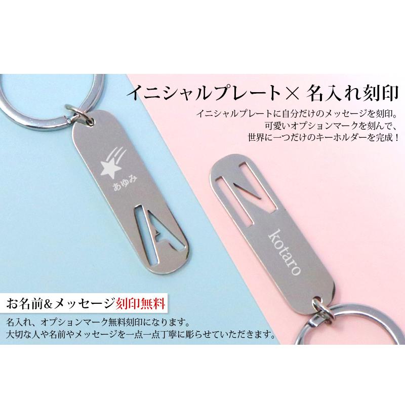 名入れ イニシャル キーホルダー オプションマーク 刻印 イラスト ステンレス 刻印無料 A-Z ネームタグ キーリング かわいい シンプル プチギフト プレゼント