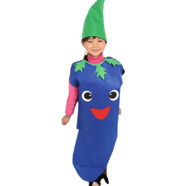 子供のナス衣装不織布野菜服パーティーの派手なドレス