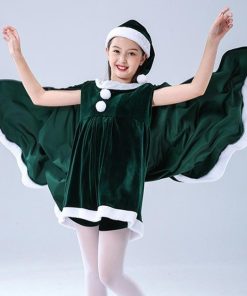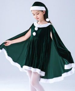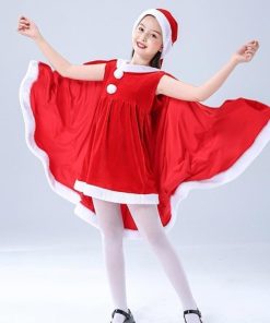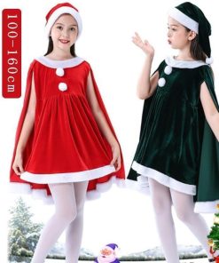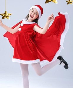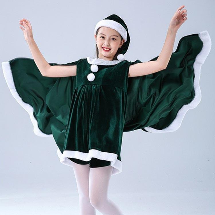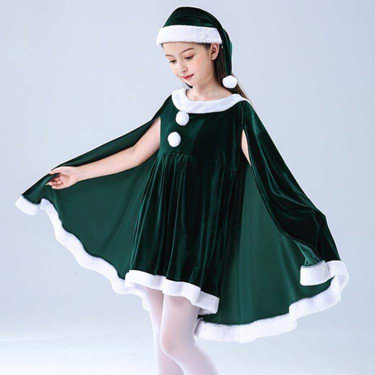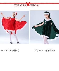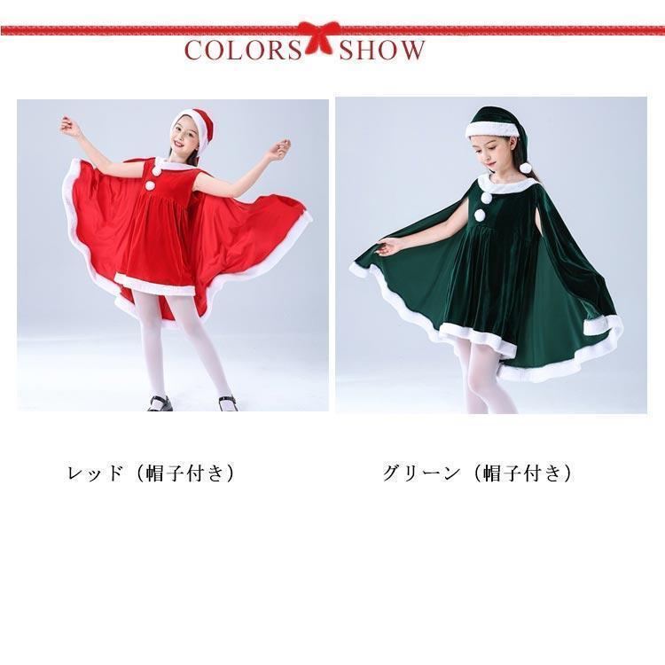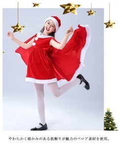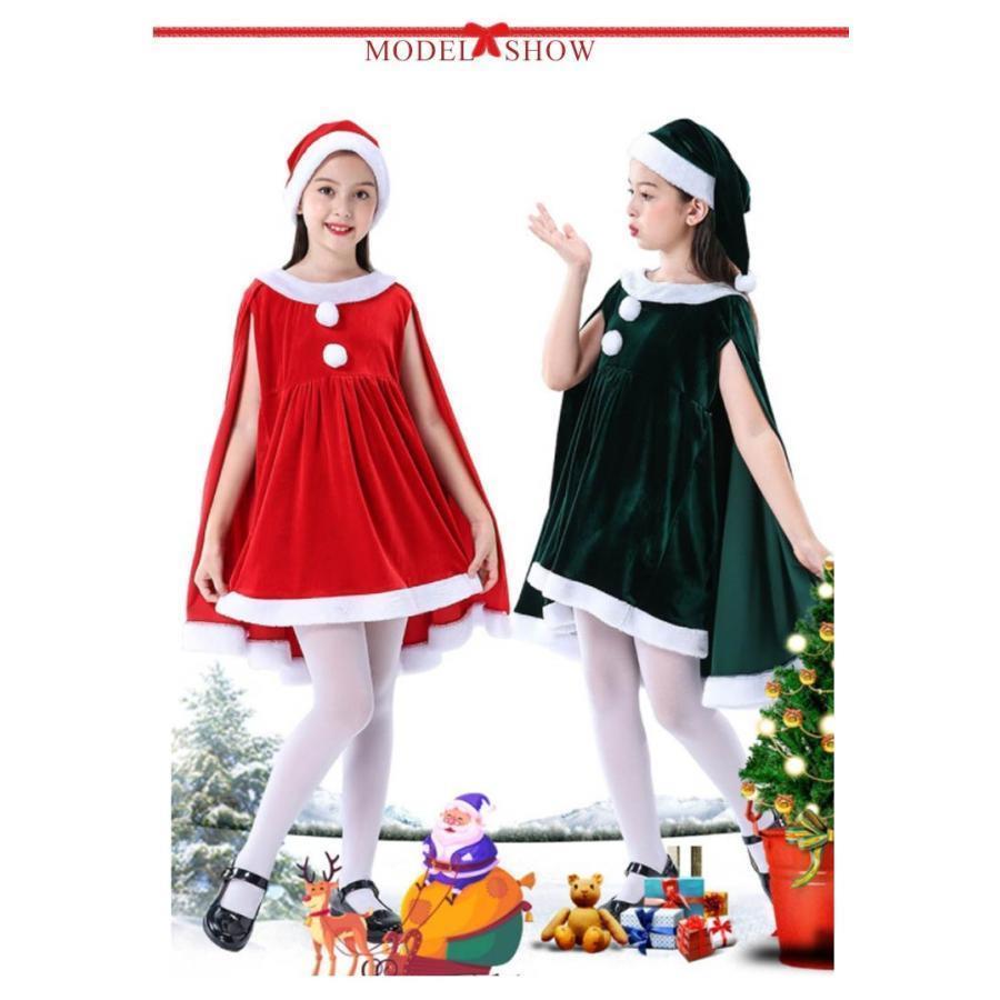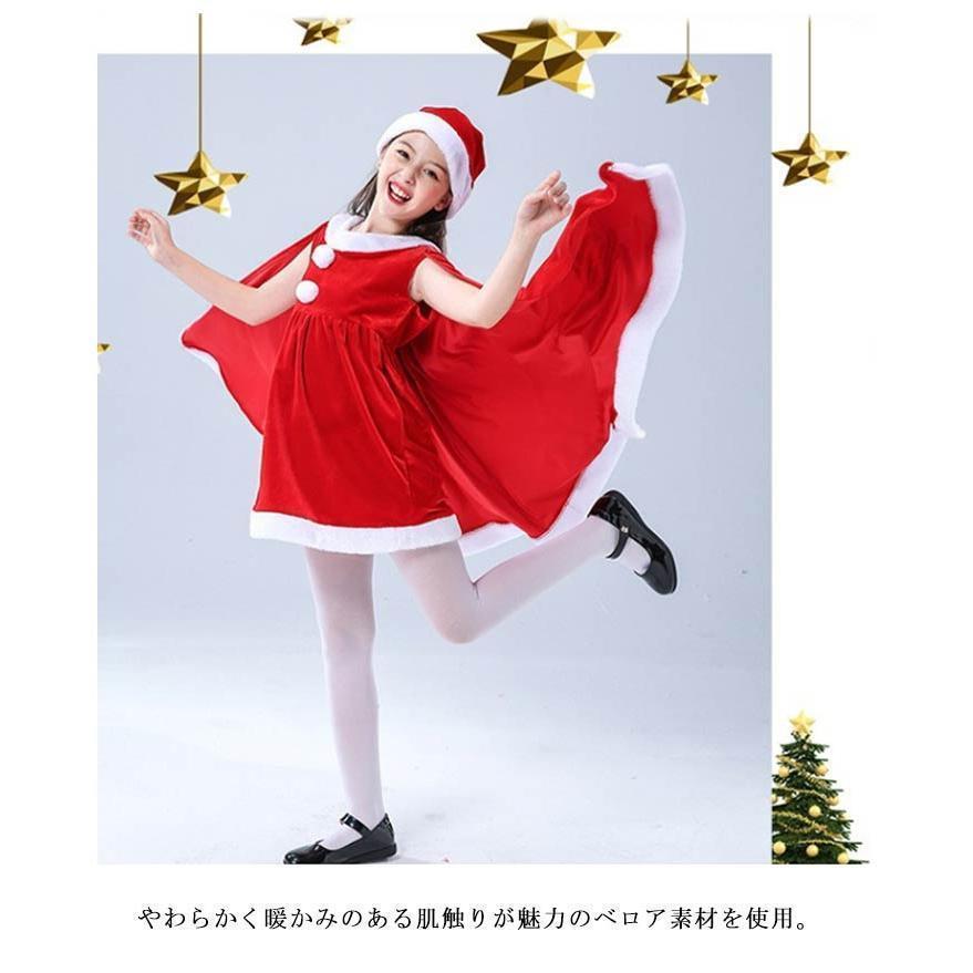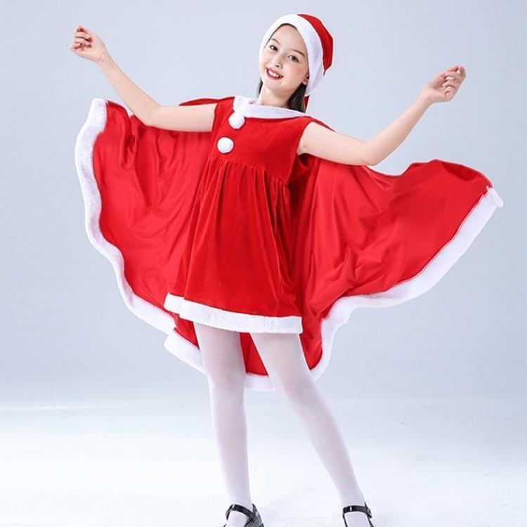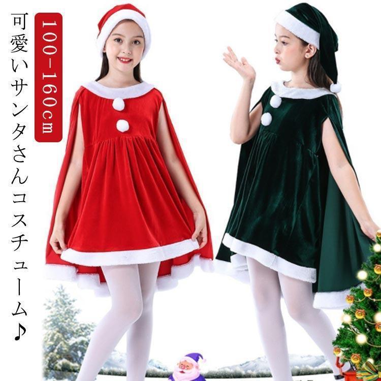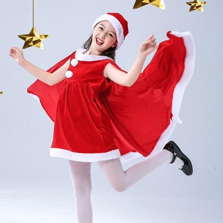 子供服 サンタクロース コスチューム ケープ 女の子 サンタコス 衣装 ポンチョ ワンピース 重ね着風 帽子付き パーテ