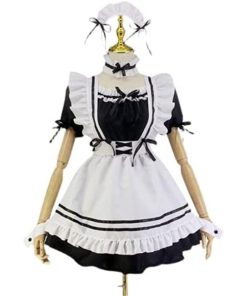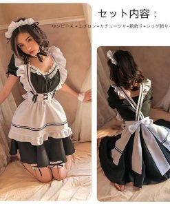 当日発送 メイド服 セクシー コスプレ ロリータ レディース メイド 服 ゴスロリ 萌え 衣装 フリル かわいい カチューシャ 付き 8点 セット