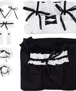【豪華6点セット】ワンピース(黒)*1点・エプロン(白)*1点・カチューシャ*1点・カフス(腕)*2点・ガーターリング(片太もも)*2点