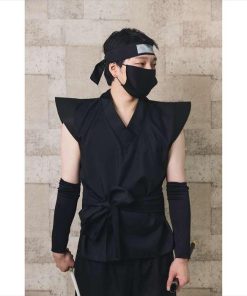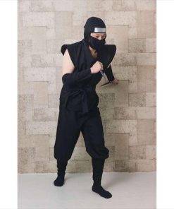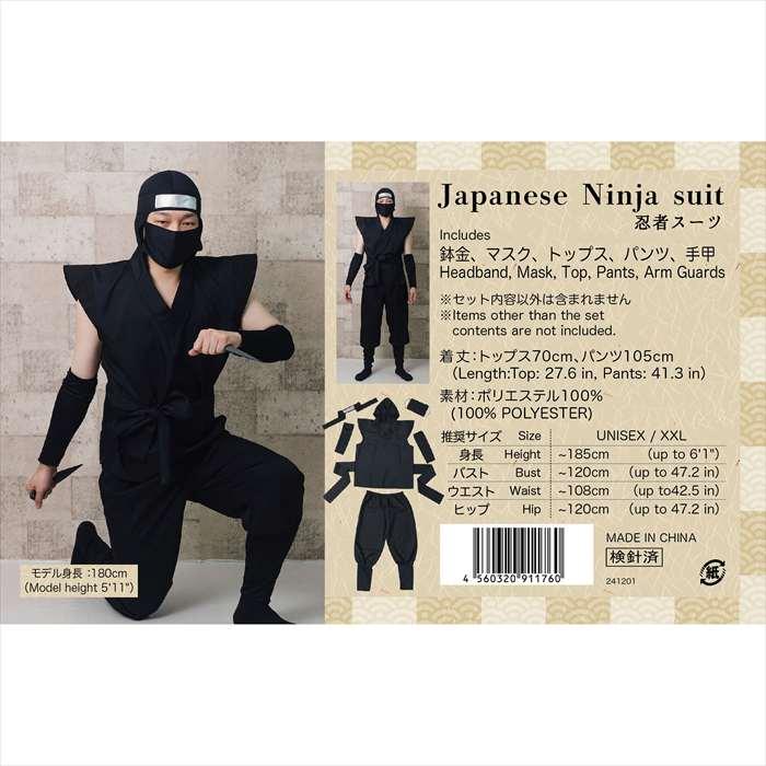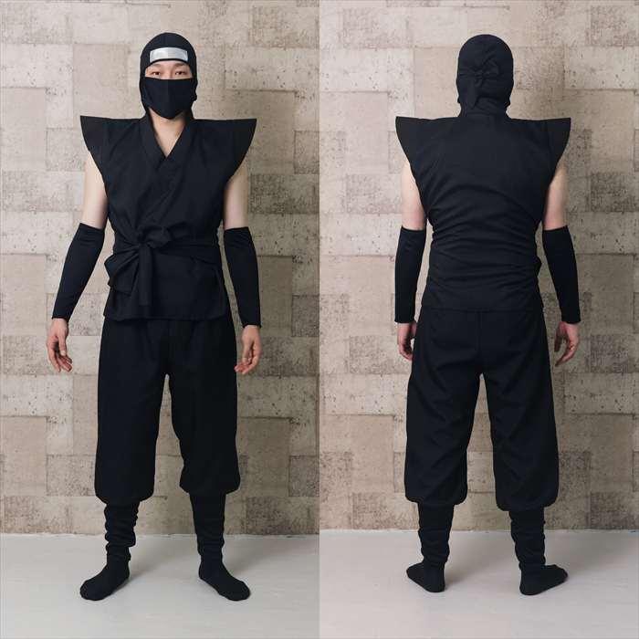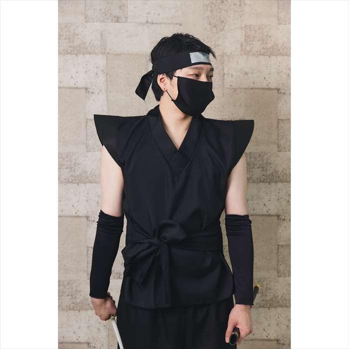 誰でも簡単に着用できる忍者コスチュームです。着方が難しいという問題を解決し、頭巾と腰紐がトップスと一体型になっているため、手軽に着ることができます。フードを外すことで鉢金(鉢巻)だけのスタイルに変化でき、印象を変える楽しさがあります。マスクタイプの口布は着脱が簡単で、足口のストレッチ生地により、サイズの微調整が可能です。特徴的なノースリーブ型のワイルドなデザインに、手甲付きで、忍者の雰囲気を存分に演出します。動きやすさと再現性を両立した、こだわりのコスチュームです。ハロウィン、コスプレイベント、写真撮影など、幅広いシーンで活躍。忍者モチーフは外国人へのお土産としても好評で、日本文化の魅力を手軽に体験できる逸品です。