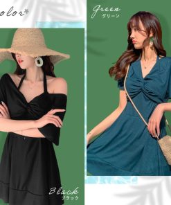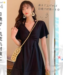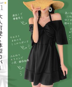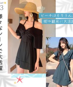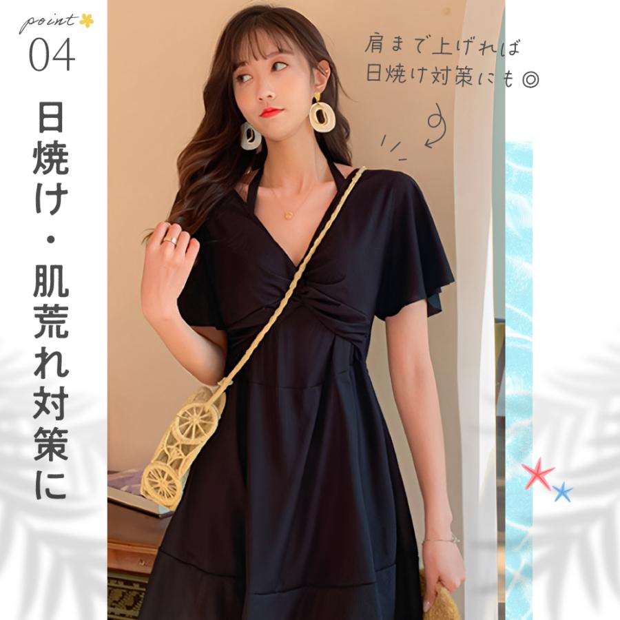 オフショルダー部分は肩まで上げることが出来るため、しっかり日焼け対策もして頂けます